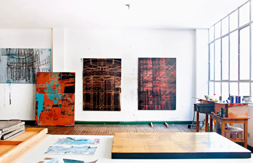 Paralelamente, la pasión por la arquitectura comenzó a manifestarse. “Mi exesposa estudió arquitectura y en ese proceso de convivencia yo empecé a participar en sus entregas de taller, la ayudaba a hacer las maquetas, los planos y así fui aprendiendo”, dice Franco. Sus primeros trabajos, abstractos y minimalistas, le abrieron poco a poco el camino a trazos y estructuras geométricas que serían la base de su posterior exploración con estructuras arquitectónicas jamás realizadas.