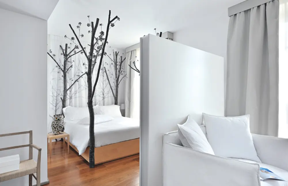 Este hotel, que cuenta con 65 habitaciones, entre ellas varias suites, un restaurante, un bar-boutique y un spa, sobrepasa los límites del diseño moderno convirtiéndose en un referente de las nuevas tendencias en la industria de los hoteles de lujo. Las telas pesadas, las camas vestidas de terciopelo, las cortinas de sedas de techo a piso, sus cojines de colores y en forma de dulces y postres, así como sus mesas en forma de taza de té hacen que la estadía sea una experiencia inolvidable. “Mientras diseñábamos el hotel yo pensaba cómo hacer para que se convirtiera en una experiencia surrealista, especialmente en los cuartos. Me imaginaba a los visitantes acostados en sus camas un poco confundidos por no saber si se encontraban dormidos o despiertos. Lograr este efecto ha requerido mucho esfuerzo y mucha meticulosidad a la hora de crear”, asegura JoAnn Tan. El resultado es evidente, Rossella Jardini, junto con su equipo de creativos y la firma Hotelphilosophy, encargada del manejo del hotel, logró encontrar el balance ideal entre lo contemporáneo y lo tradicional, lo real y lo intangible, donde la innovación y la originalidad de su decoración y de su mobiliario despiertan todos los sentidos haciendo posible que sus clientes se vayan renovados.