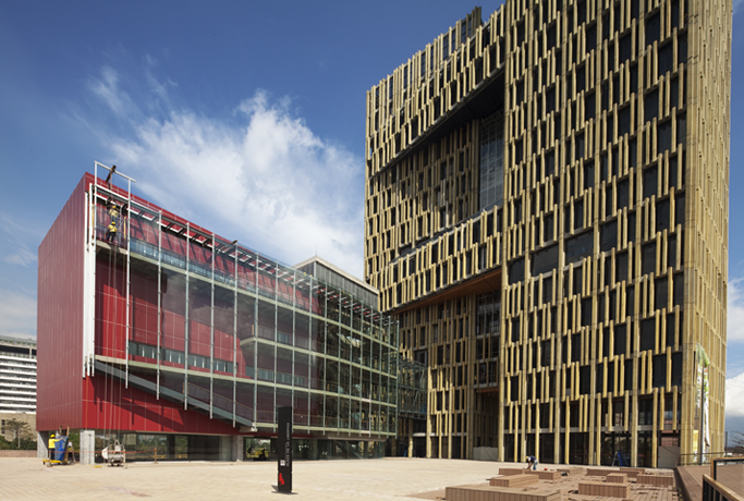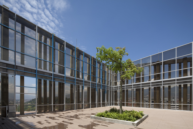 El proyecto incorpora diferentes elementos dentro de una acertada visión de escala metropolitana. La Torre Institucional se planteó como un referente del centro de la ciudad, compuesto por dos torres de 24 y 17 pisos respectivamente. En su interior se encuentran las oficinas de la Gobernación en los pisos superiores y comercio en la primera planta, terrazas jardín y un mirador público. “La piel del edificio es un sistema de pórticos y prefabricados de concreto que cumple las funciones de estructura y control solar, y hace referencia a la corteza de dos grandes árboles”, explican los arquitectos.