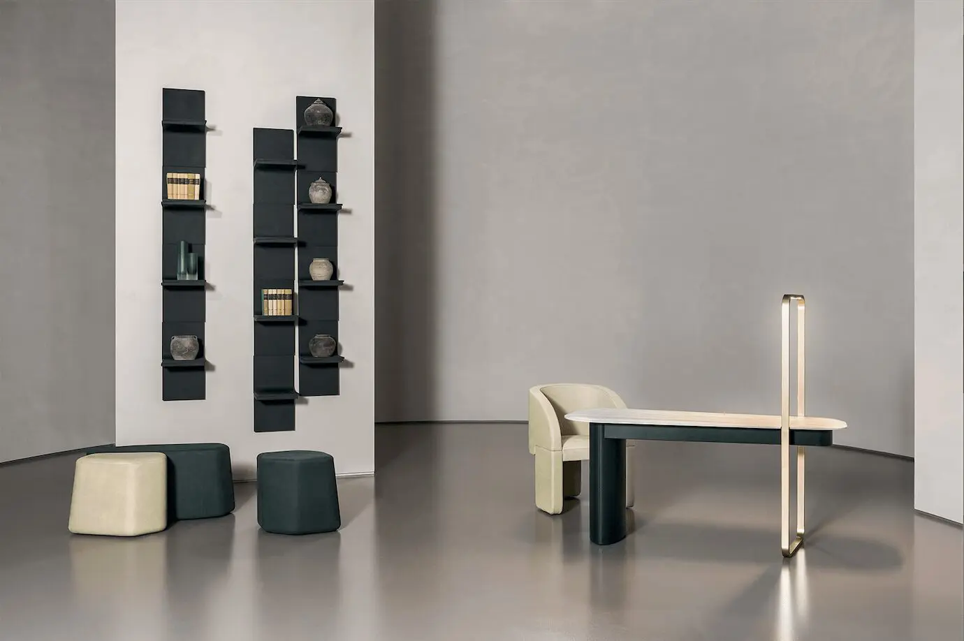 “El proyecto más innovador lo firma Christophe Delcourt, a través del desarrollo de formas orgánicas que encajan entre sí. CLARA es un sofá modular compuesto por numerosos elementos que se combinan para crear cada vez composiciones de asientos hechas de vacíos y sólidos entrelazados, así como de curvas cóncavas y convexas; la característica principal es la de una sala de estar “descompuesta”. La colección Delcourt se completa con elementos fuertemente esculturales como FANY, con una artística tapa de cristal y patas de travertino romano, y sillón Keren y puf Beki, ambos de cuero. ”Aseguran desde la marca.