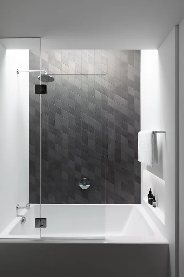 En cuanto a colores, el blanco y el negro, con sus escalas, continúan con fuerza. Un diseño de American Standard.