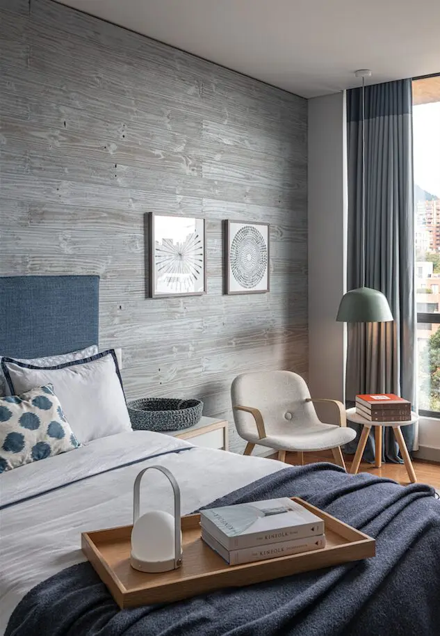 La lámpara resulta un accesorio indispensable en este espacio, pues nos permite darle funcionalidad para leer y hacer otras actividades, además genera un spot de luz que lo convierte en un ambiente cálido y acogedor. Las de pie y colgantes son una opción excelente que le da verticalidad y movimiento al espacio.