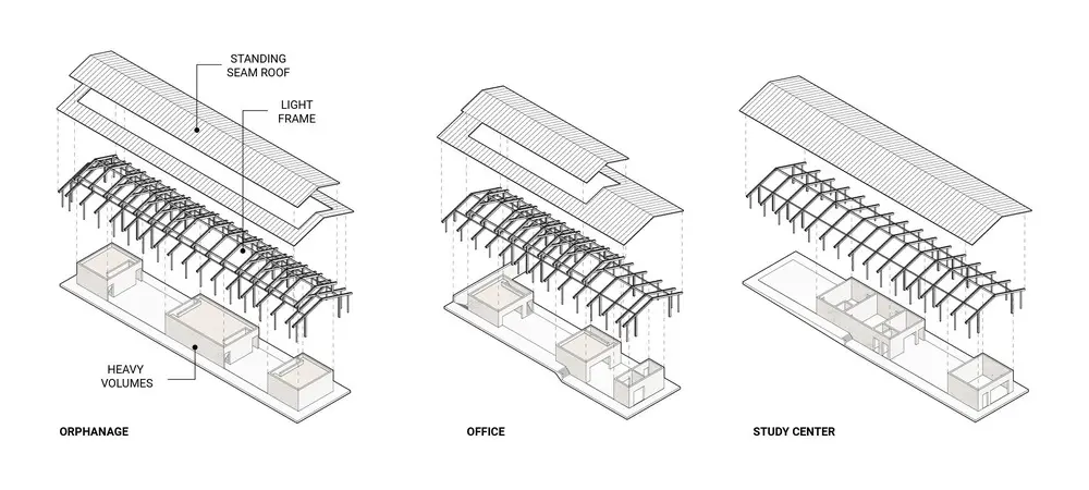 Al ayudarlos a diseñar su espacio, el proyecto se convierte en una expresión contextual de una identidad local en la que la comunidad puede encontrar su propio significado.La arquitectura explora los valores de la materialidad honesta, la artesanía, la tectónica expresiva y la sensibilidad vernácula.