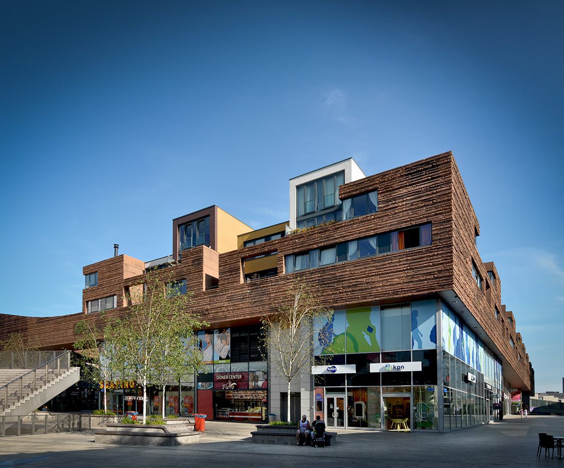 El arquitecto británico Will Alsop, diseñador del Urban Entertainment Centre, también diseñó el Sharp Center for Design para el Ontario College of Art and Design en Toronto. Desde el principio, el arquitecto y residente de la ciudad René van Zuuk ha sido responsable de múltiples diseños llamativos en Almere Centrum, pero también el diseño del Centro de Arquitectura de Amsterdam (ARCAM). Y los ejemplos continúan, desde Francia, Alemania y el Reino Unido, hasta Etiopía e Indonesia, lo que ilustra cuán única es la colección de obras arquitectónicas dentro de este único kilómetro cuadrado.