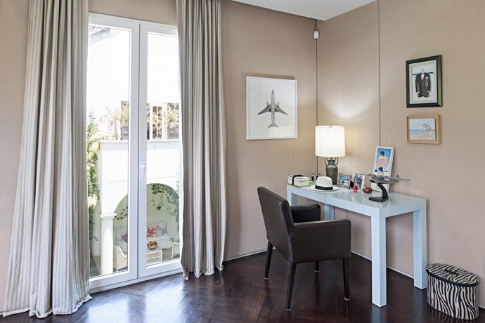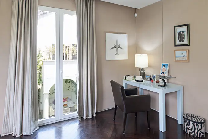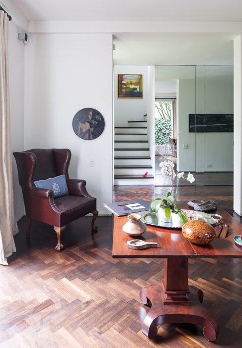 La arquitecta sabía que la solicitud era totalmente atípica así que recurrió a un volumen sencillo, que no alterara la armonía del barrio: «Es una casa de pocos espacios pero amplios y luminosos, que le permite al propietario, que posee un gran sentido estético, estar rodeado de las cosas que le gustan», afirma  Cecilia Fernández. Mejor dicho: aunque es una arquitectura con detalles, no es recargada. Es un espacio para que el dueño exprese su personalidad con libertad.