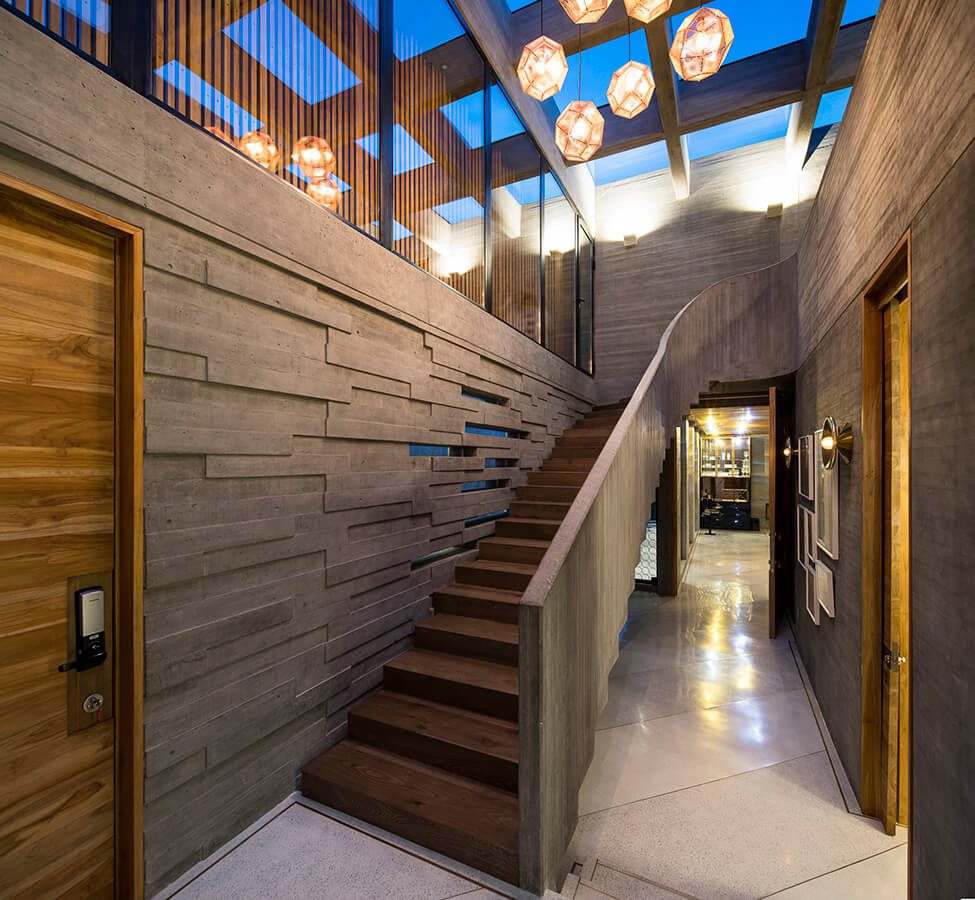 Este proyecto –que tuvo como arquitecto residente a Ronald Riay y en la consultoría de concreto a Francisco de Valdenebro– es una vivienda unifamiliar ubicada en el norte de Bogotá, diseñada como un volumen aislado flotando sobre una plataforma que conforma el semisótano.