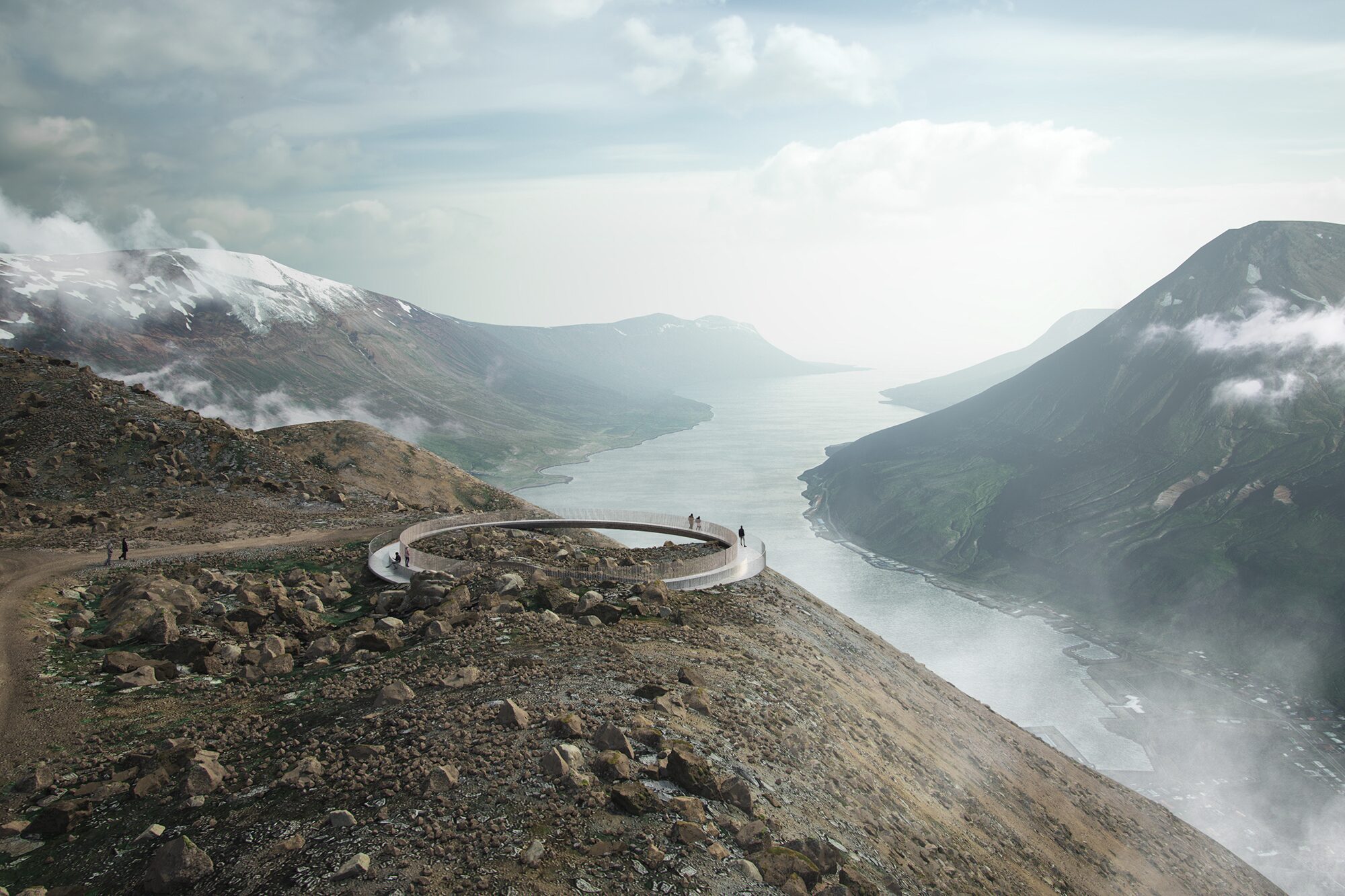 Seydisfjordur es uno de los pueblos más visitados en Islandia y uno de los atractivos que tendrá este lugar será justamente ´Anillo de Bjólfur´, una plataforma de observación. La obra, propuesta de la firma Esja Architecture, concederá una vista en la que se pueden contemplar las montañas y todo el paisaje.