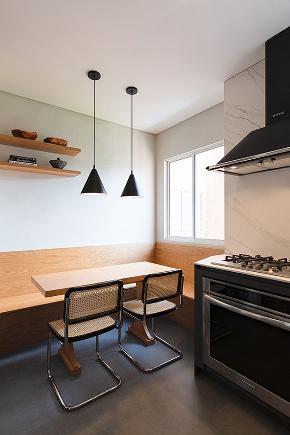 Ahora los ambientes son fluidos y se conectan de manera casi imperceptible mediante un sistema de perfiles metálicos que divide las áreas para no prescindir de las conexiones visuales. Esto se desprende de la idea de integración, la cual se evidencia en espacios como la cocina, donde dispusieron un comedor auxiliar –cuyo diseño, aunque sobrio, destaca por su elegancia– con la premisa de transformarlo en un lugar de reunión.