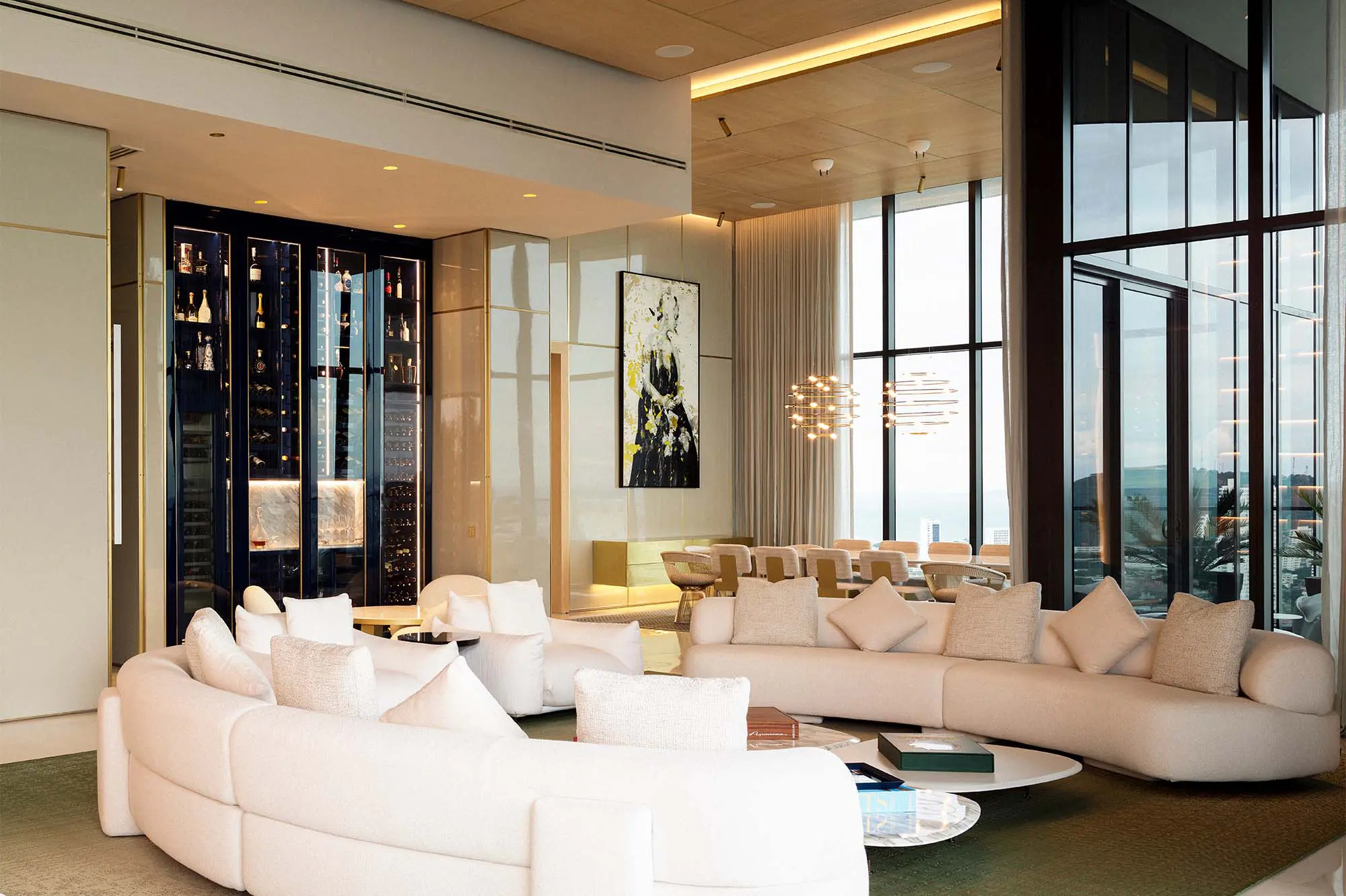 Situado a gran altura y con una vista estratégica hacia la bahía de esta ciudad costera, este proyecto de 700 metros cuadrados tomó su tiempo —literalmente—. “Y fue récord lograr llevar a cada rincón hasta el más mínimo detalle en apenas once meses”, comenta Sighinolfi, quien recibió este apartamento completamente nuevo y equipado.