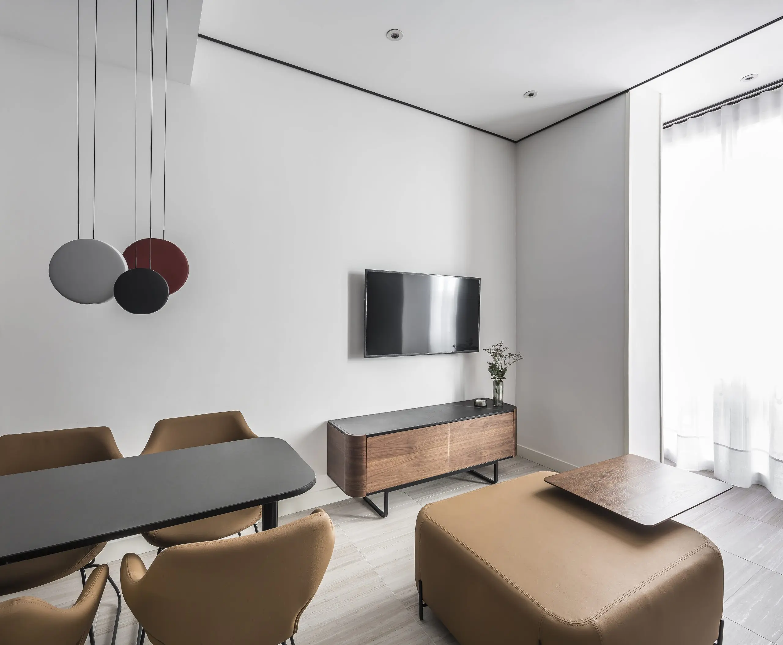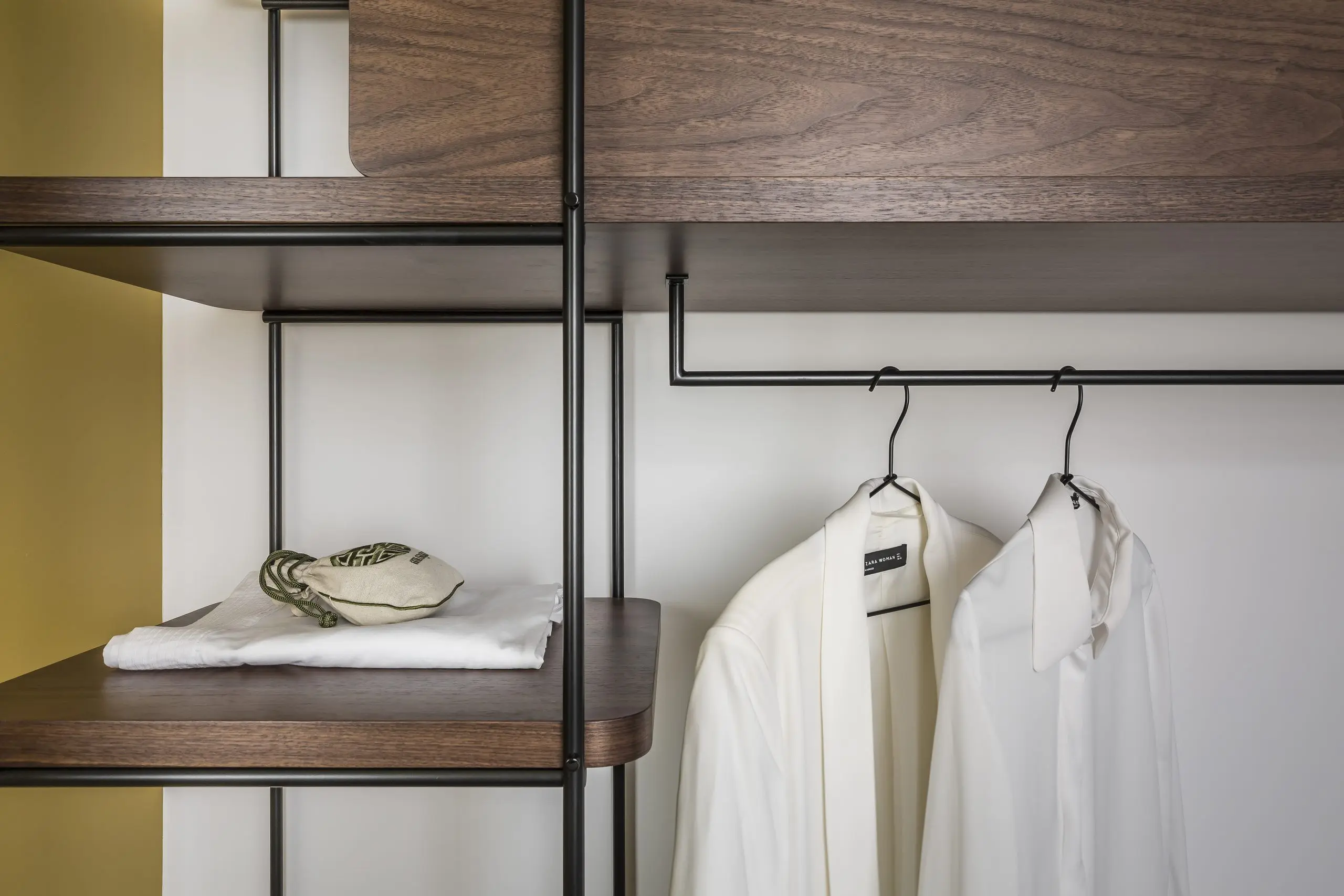 Al momento de lograr ese toque distinto, el arquitecto apostó por firmas españolas que están teniendo un gran reconocimiento tanto nacional como internacional. Explican que para componer el interiorismo seleccionaron una pieza singular para trabajar el resto de los elementos a partir de ella. En este caso, el objeto elegido fue un aparador de la colección Adara, de la firma valenciana Momocca. La característica curva de sus piezas y las líneas negras del metal sirvieron de inspiración para el resto del espacio.