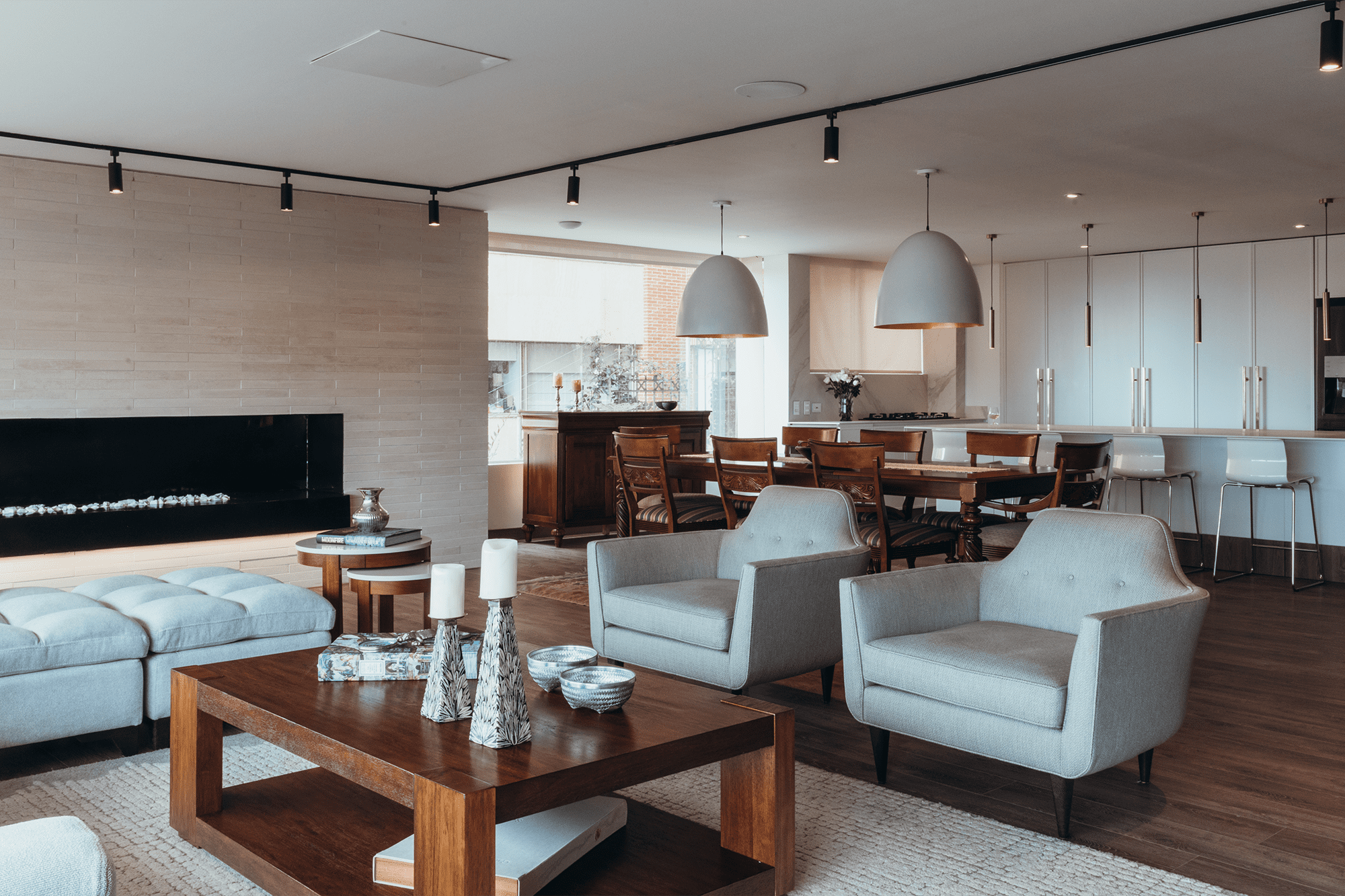 En términos generales, este proyecto consistió en una remodelación total del inmueble —incluyendo no solo la organización espacial, sino los acabados—, que si bien alcanza los 360 metros cuadrados, su distribución original era un tanto desproporcionada: “La cocina era demasiado pequeña respecto a los otros espacios y en proporción al área del apartamento, sumado al hecho de que estaba aislada de la zona social, separada por muros divisorios”, explica la arquitecta.