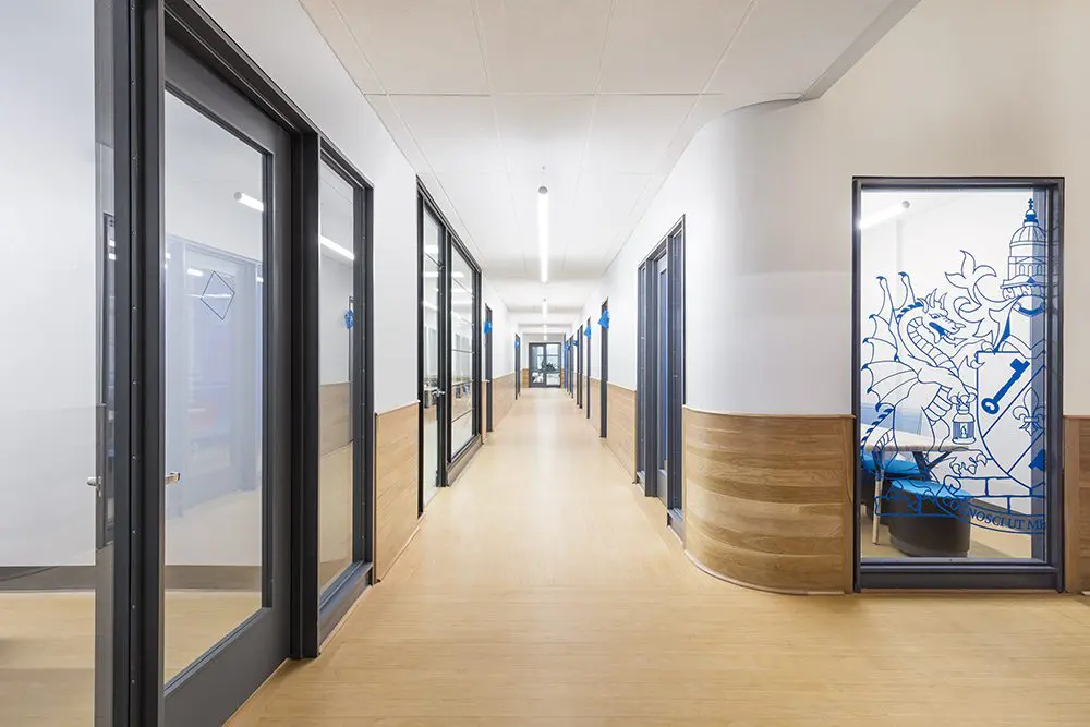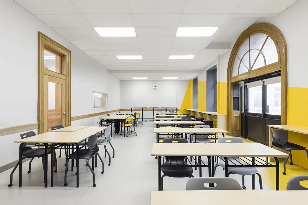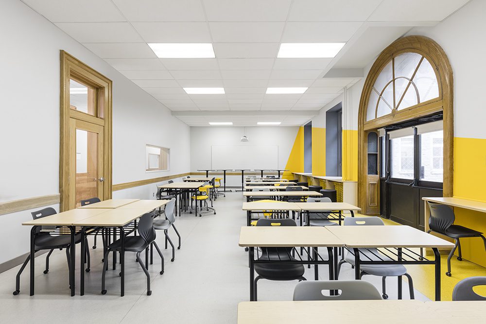 Los pasillos y las aulas han experimentado varias mejoras, incluida la adición de grandes ventanas interiores a las repisas profundas que brindan a los estudiantes un espacio de trabajo dentro de los pasillos, al tiempo que proporcionan mucha luz natural en el pasillo que anteriormente estaba ausente.