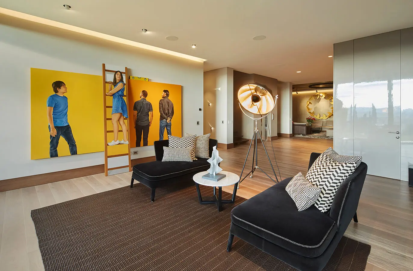 Otros dos factores contribuyeron a que esta casa sea única. Por una parte la colección de arte, que enriquece los diferentes recorridos espaciales, en la que llaman la atención obras como la escultura amarilla del maestro colombiano Édgar Negret, que establece un diálogo de estilos y épocas con la pieza del artista antioqueño Federico Uribe, colgada sobre la chimenea. En el hall de ingreso dos esculturas de Seung Mo Park y de Santiago Uribe, y una obra blanca de Sophia Vari, dan la bienvenida al visitante y marcan la pauta de lo que encontrará adentro.