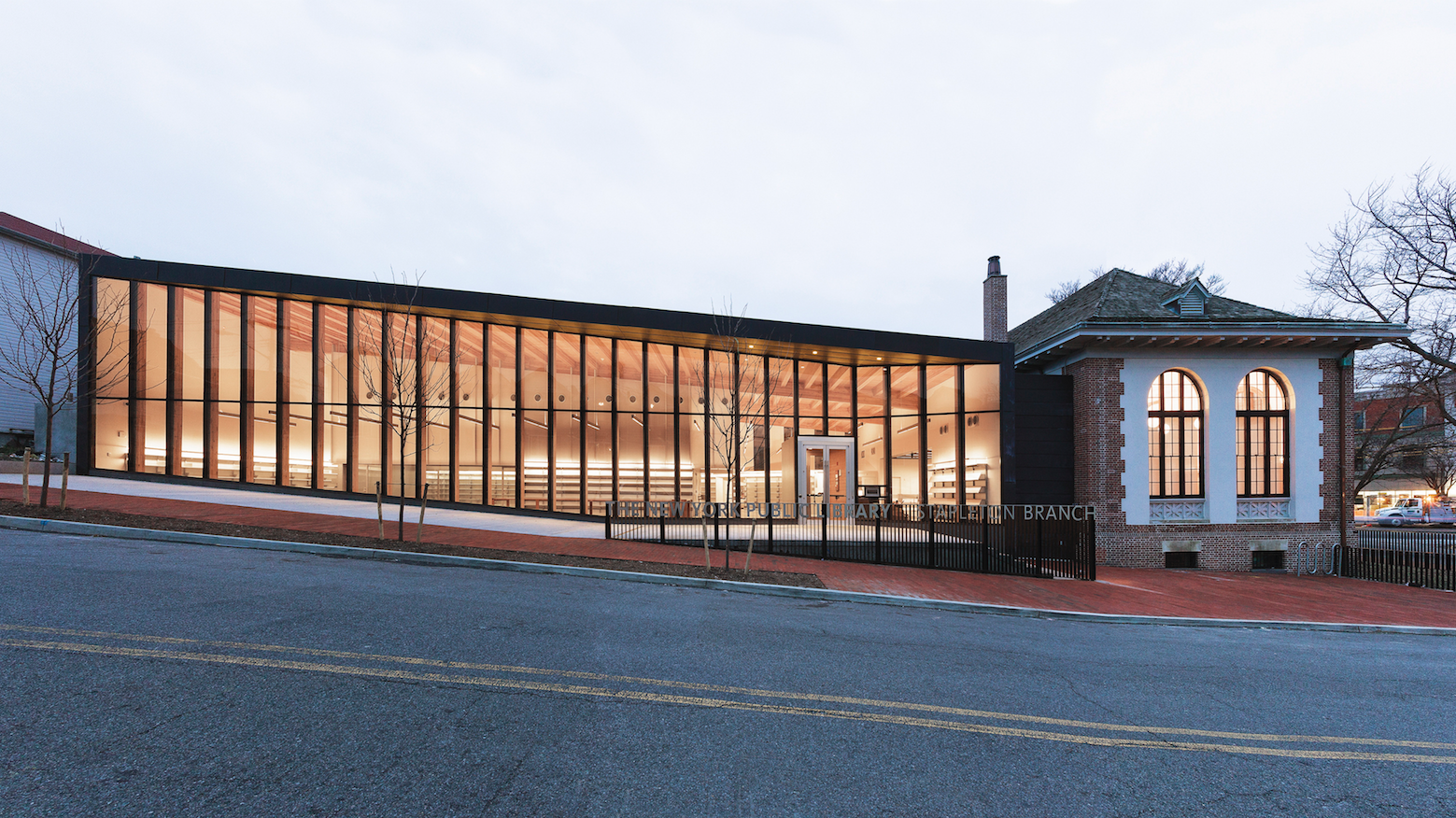 Andrew Berman Architect recibió el encargo de diseñar una biblioteca sucursal reconcebida y ampliada situada en Stapleton, Staten Island, para la Biblioteca Pública de Nueva York. Una biblioteca sucursal Carnegie de una sola sala, diseñada por Carrere y Hastings en 1909, había estado sirviendo a la comunidad durante más de 100 años, y debía ser renovada como parte de la expansión de la biblioteca. Se destinó un terreno vacío adyacente a una ampliación de 7.000 pies cuadrados para crear una nueva biblioteca de 12.000 pies cuadrados que sirviera mejor a la comunidad y a sus necesidades actuales.