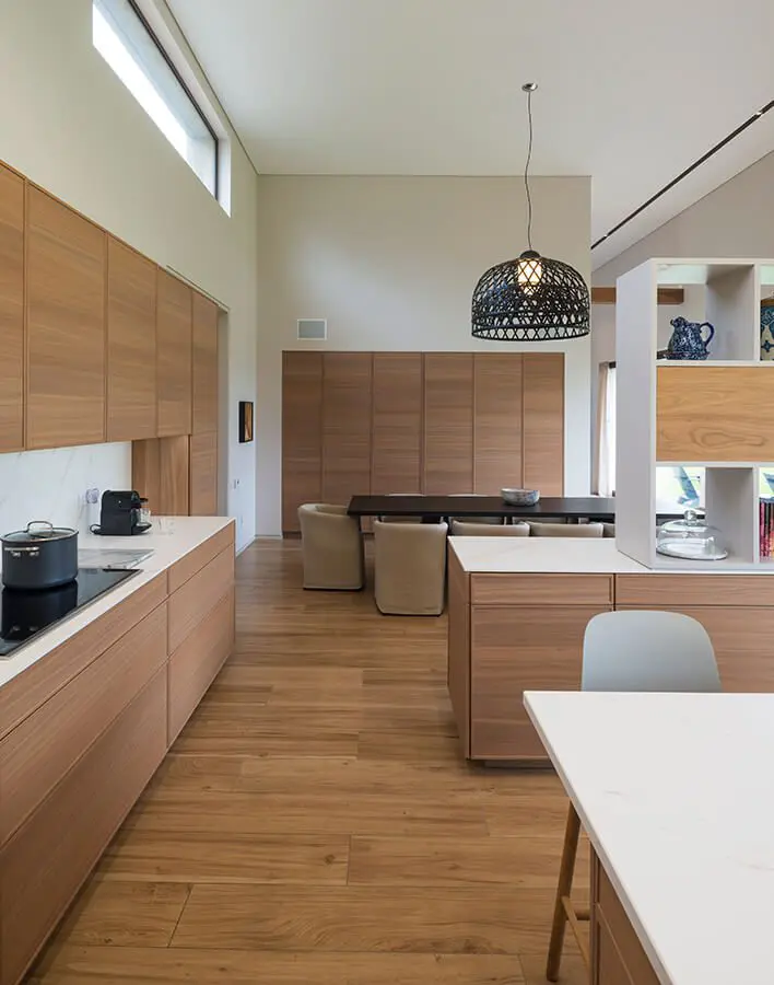 “La integración espacial hizo que la vivienda fuera, además de acogedora, muy práctica”, señala la arquitecta. Tanto, que su diseño resulta imposible de encasillar dentro de una u otra corriente estética. Se trata de una propuesta atemporal que respira una atmósfera apacible y luminosa.