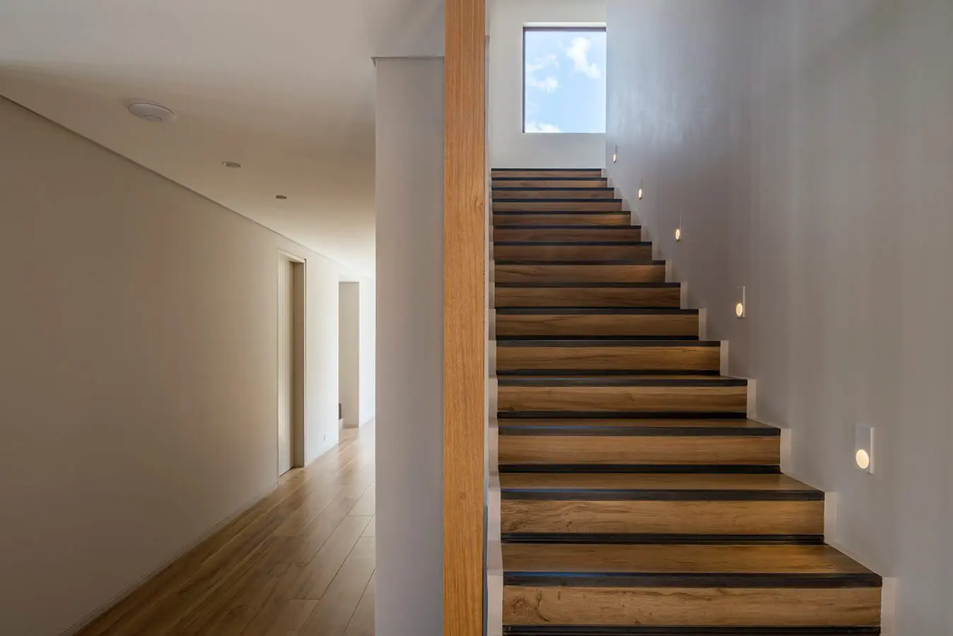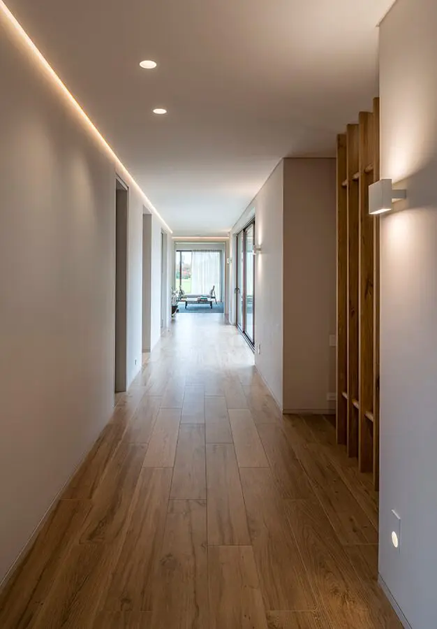 Todos los espacios, salvo las habitaciones de los hijos, se ubican en el mismo nivel con el fin de impregnarlas con la vitalidad del patio central y, asimismo, de relacionarlas permanentemente entre sí. Sobre la vía de acceso, no obstante, ocurre lo contrario: la fachada principal se cierra completamente hacia la calle de acuerdo con los requerimientos de privacidad de la familia.
