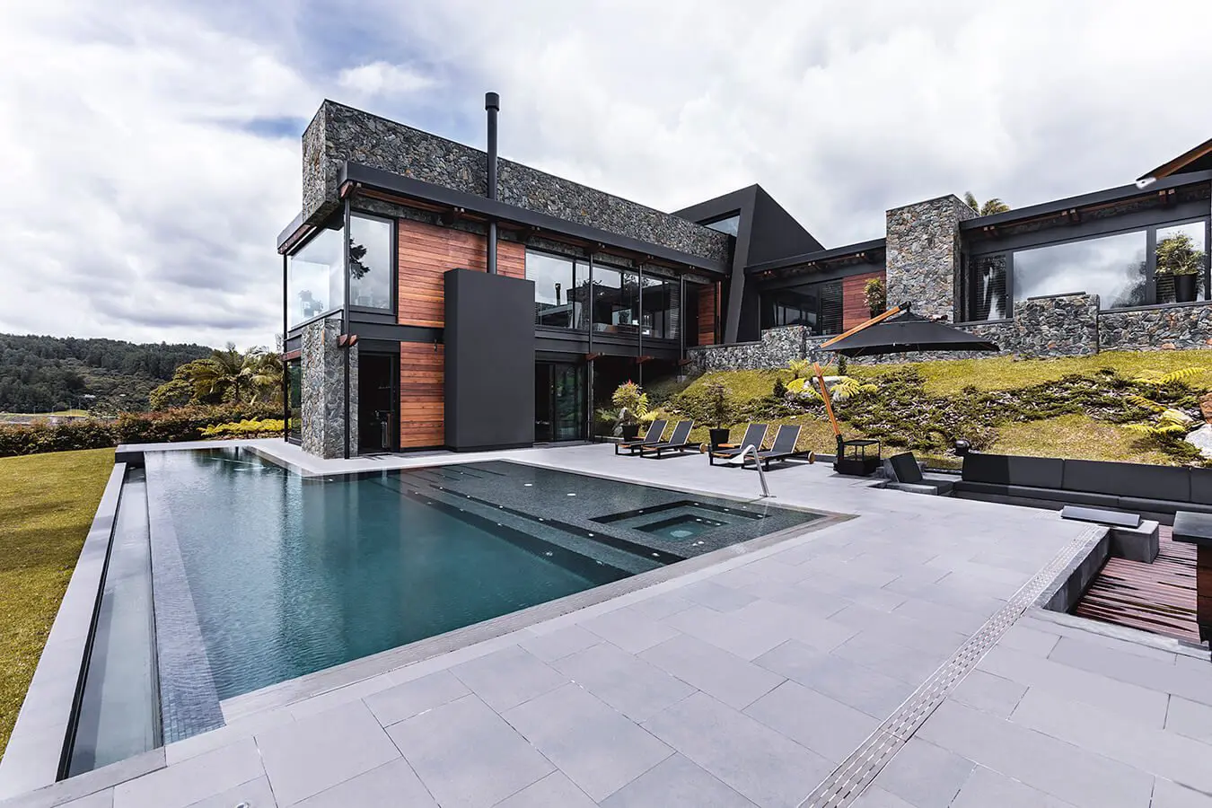 El jacuzzi se incorpora bajo la misma lámina de agua y pasa inadvertido a simple vista. Aunque está formalmente integrado, su agua se calienta de manera independiente de la del resto de zonas. Gracias a su diseño y versatilidad, esta obra se ha hecho merecedora de premios especializados de carácter internacional.