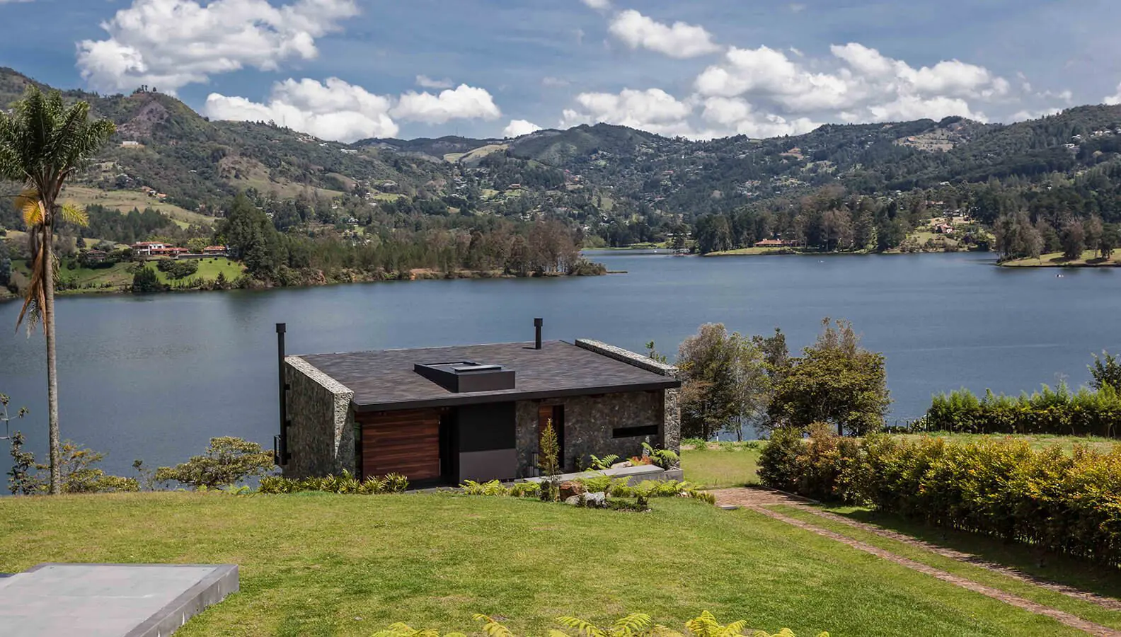 Su ejercicio profesional enfrentó tres grandes retos: emplazar una obra, cómoda y agradable, en un lugar con fuerte pendiente; sacar el máximo provecho a un lote de carácter cónico, con la parte estrecha en la zona topográficamente más elevada (y las mejores visuales sobre la represa), y diseñar una construcción que respondiera a su entorno natural de manera tranquila, amable y respetuosa.