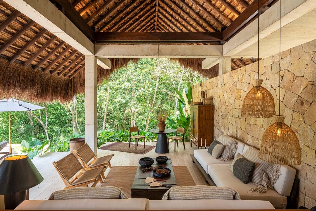 El clima húmedo de la región condujo a la elección de materiales resistentes a la exposición que implica habitar espacios abiertos. El interior es una segunda arquitectura que, con pocos elementos, sabiamente dispuestos, hace eco del lugar.