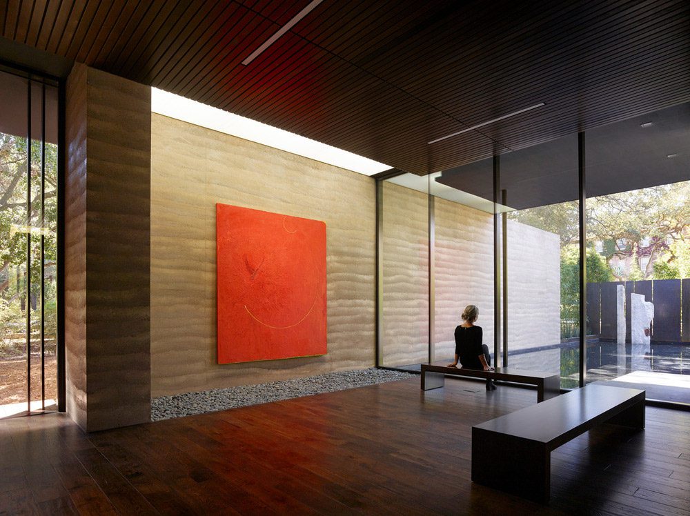Para realzar la experiencia sensorial, los arquitectos eligieron, materiales como tierra apisonada y superficies de madera y elementos como el agua que ayudan al ejericio de la contemplación.