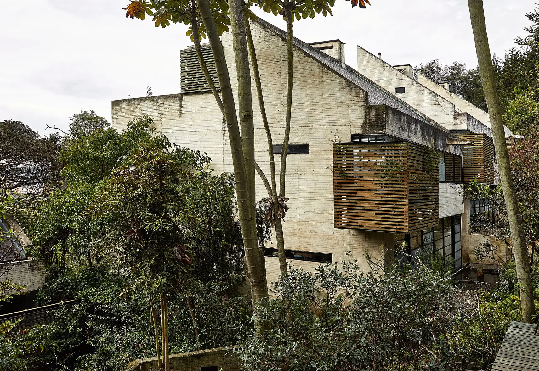 La composición arquitectónica, modular, se basa en el juego rítmico de planos opacos y translúcidos. Entre tanto, un gran jardín, donde se sembraron diversas especies nativas del bosque alto andino, es el alma del conjunto. En otras palabras: se trata de un jardín con casas, cualidad que les permite a las construcciones ser receptoras de la naturaleza circundante y del trascurso del tiempo.