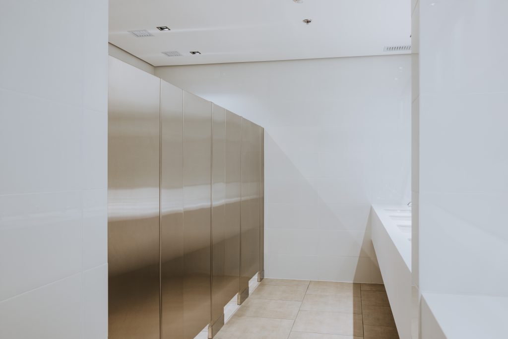 Con un total de 22 niveles, todos los baños de esta torre cuentan con divisiones de acero inoxidable hechas por la compañía Socoda. “El producto que instalamos tiene anclaje a piso, pensado para alto tráfico. Además, su limpieza resulta muy sencilla, ideal para esta época”, indica Olga Patricia Medina, directora del canal constructor de la empresa.