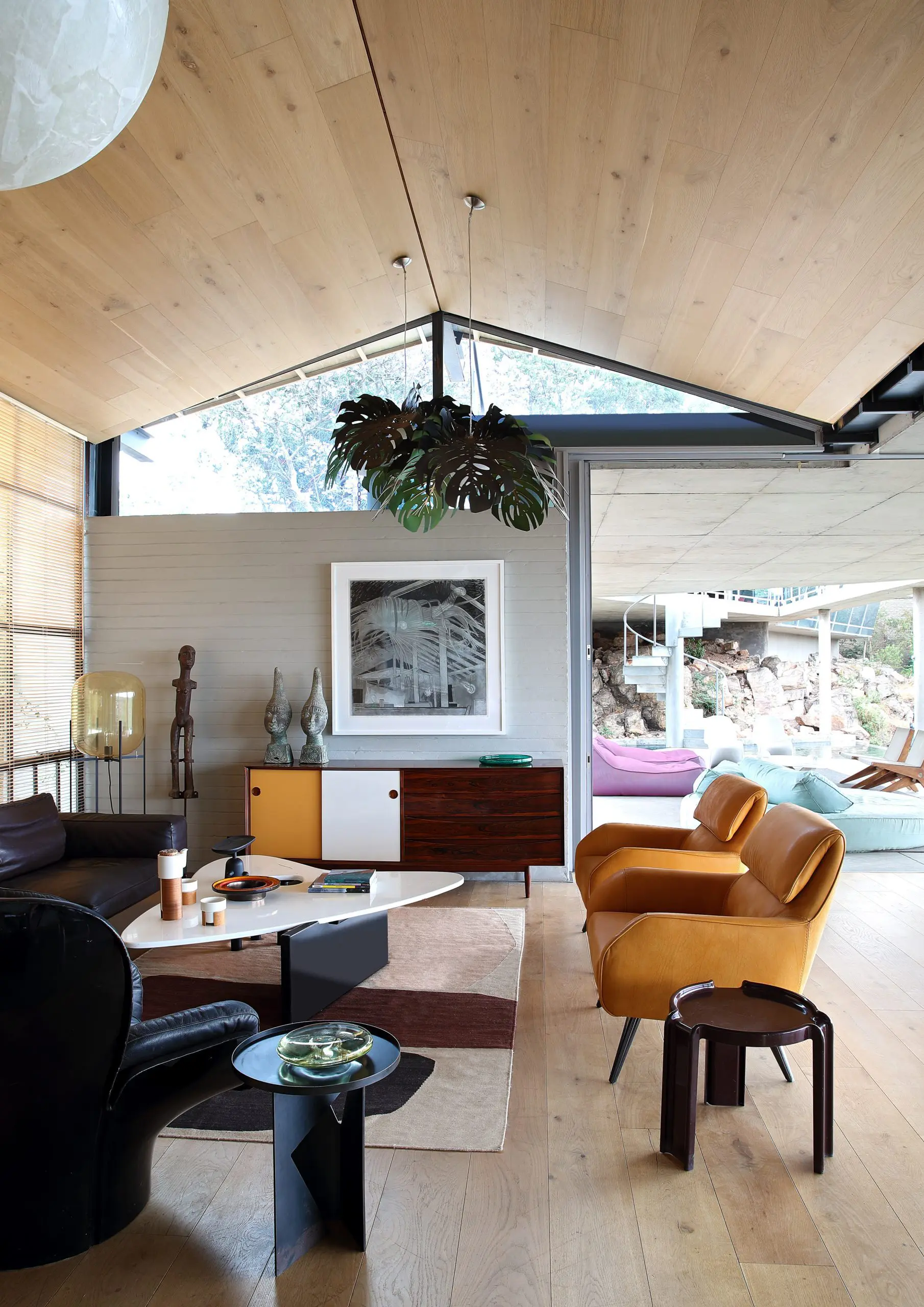 Casualmente, Silvio y Lesley habían terminado dos recientes proyectos que alimentaron su interés en ese estilo. El primero, Keurbooms Cottage, en Plettenberg Bay, parecía sacado de 2001: odisea en el espacio –la reconocida película del director estadounidense Stanley Kubrick–, y el segundo, en Nettleton Road, en Ciudad del Cabo, involucró el diseño interior de una casa de vacaciones inspirada en el arquitecto estadounidense John Lautner (1911-1994). “Despertó un pequeño