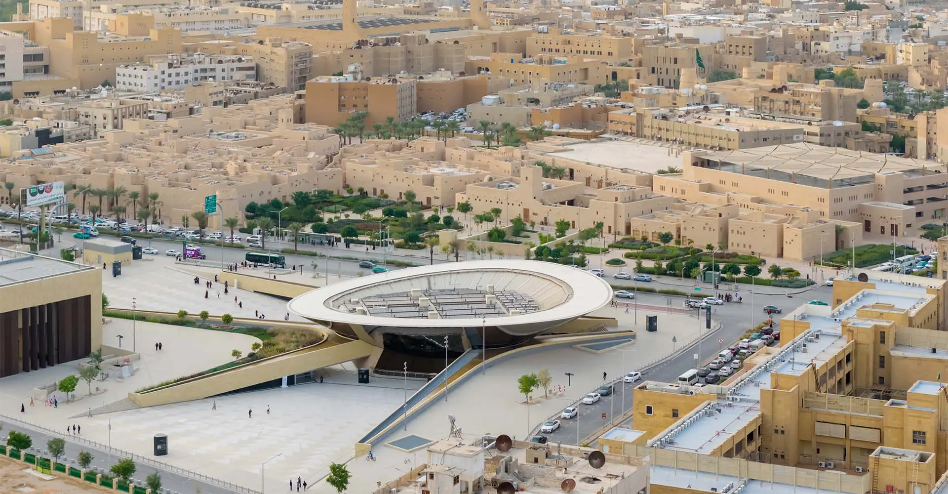 La estación Qasr Al Hokm, en Arabia Saudita, no es solamente una terminal de transporte, sino también una plaza, un parque. Su arquitectura cuestiona la recurrente oscuridad de los metros subterráneos.