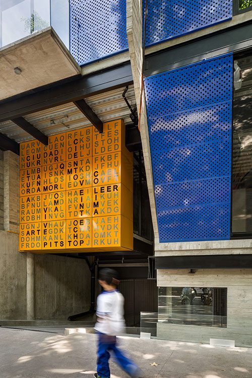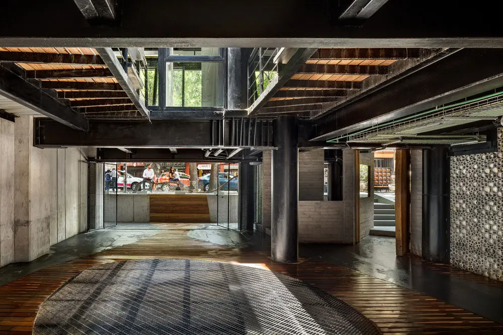 De fachada llamativa, acabados expuestos, columnas metálicas, metal corrugado, paneles perforados, cubos de peltre y frases urbanas convierten este proyecto en una parada obligada, a los transeúntes de La Colonia.