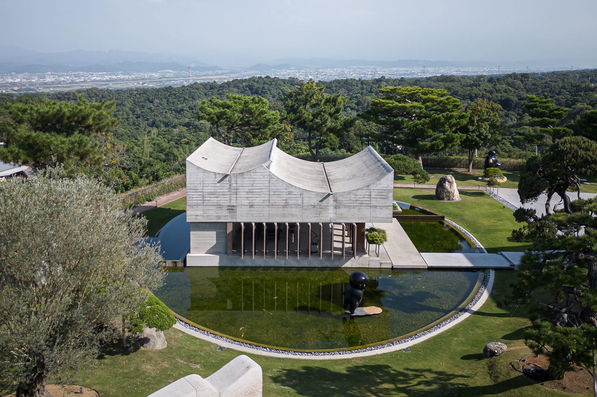 En el aspecto urbano, el edificio aparece como una pieza suelta que flota sobre un estanque de agua ovalado. Esto le imprime un carácter de solemnidad al inmueble, que parece un pequeño templo y contribuye además a refrescar el ambiente durante los meses de verano.