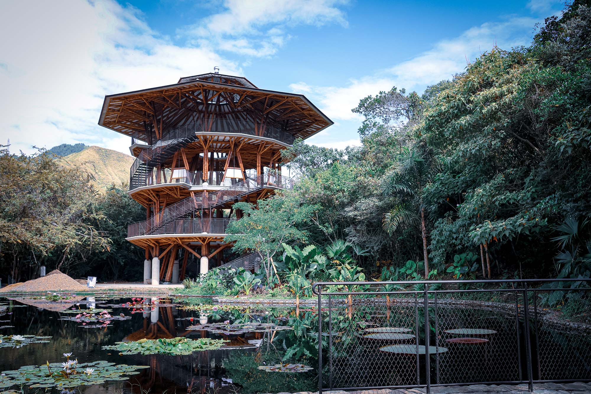 Uno de sus proyectos más recientes, en el que despliega toda la plasticidad escultórica de su material favorito, es la torre mirador del Jardín Botánico de Cali. “Se hizo pensando en poder observar toda la biodiversidad que sucede a medida que uno va subiendo los distintos niveles del dosel del bosque tropical seco, donde está situado el Jardín”.