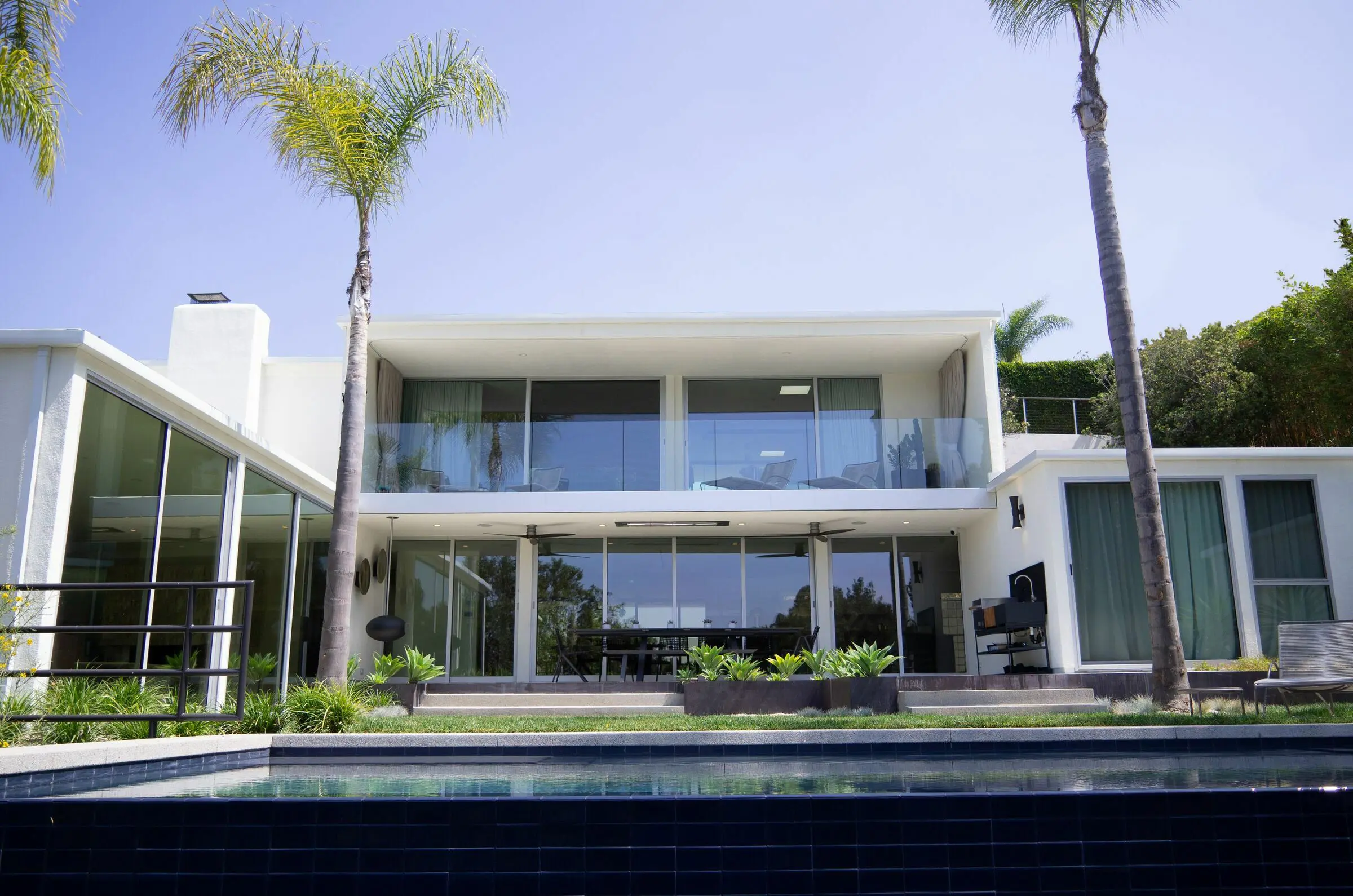 Para la suite principal, se reconfiguraron el baño y el armario y se recreó el balcón original, aunque esta vez con una barandilla de cristal para aprovechar al máximo las vistas y las palmeras de la propiedad.