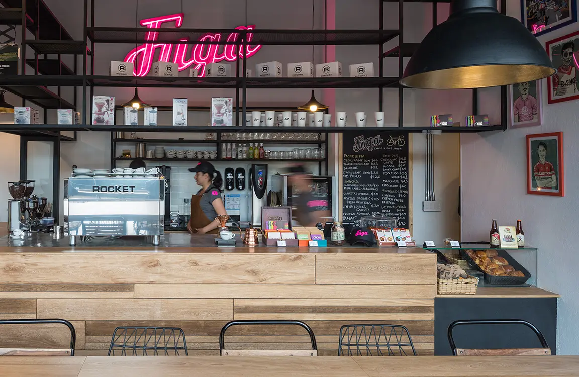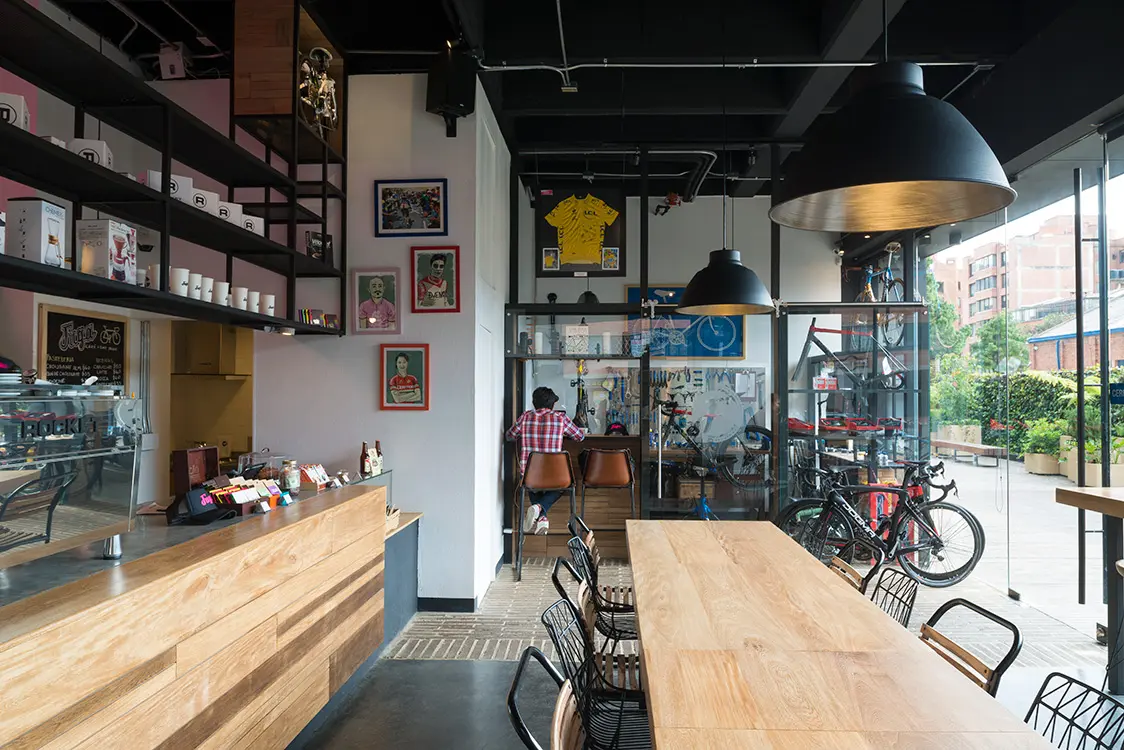 Aquí el café es el centro de un espacio inspirado por el ciclismo. “Nos hemos asesorado con expertos, porque no veníamos de esta rama. Además, no estamos comprometidos con ninguna zona o proveedor, queremos ofrecer rotación. En este momento estamos trabajando con café del Huila y de Cundinamarca. Más adelante vamos probar del eje cafetero…”, afirma Jaramillo.