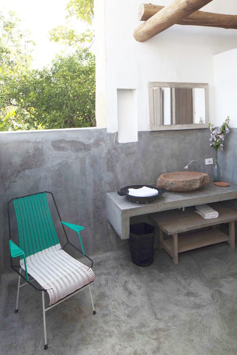 La máxima inmersión con la naturaleza se logra en el baño principal ya que pese a tener un terraza con antepecho alto que le da privacidad a la ducha, logra un contacto con un árbol de almendro que termina incorporado en la arquitectura. El sanitario aunque está más protegido, no se escapa de la entrada de los pájaros y del sonido claro de las campanas de la iglesia. Así es esta obra que, según la dueña, no está terminada, sino que se mantiene en constante evolución.