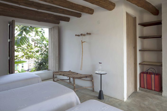 De acuerdo con la tipología del barrio surgen las modulaciones de las ventanas y hay postigos, aunque una versión modificada para lograr una lectura contemporánea sin escapar a la identidad del pueblo. Otro detalle cautivador son algunos muros de tapia pisada, que están a la vista intencionalmente.