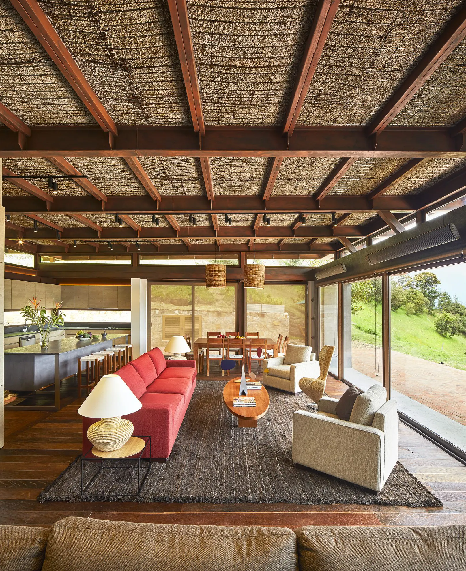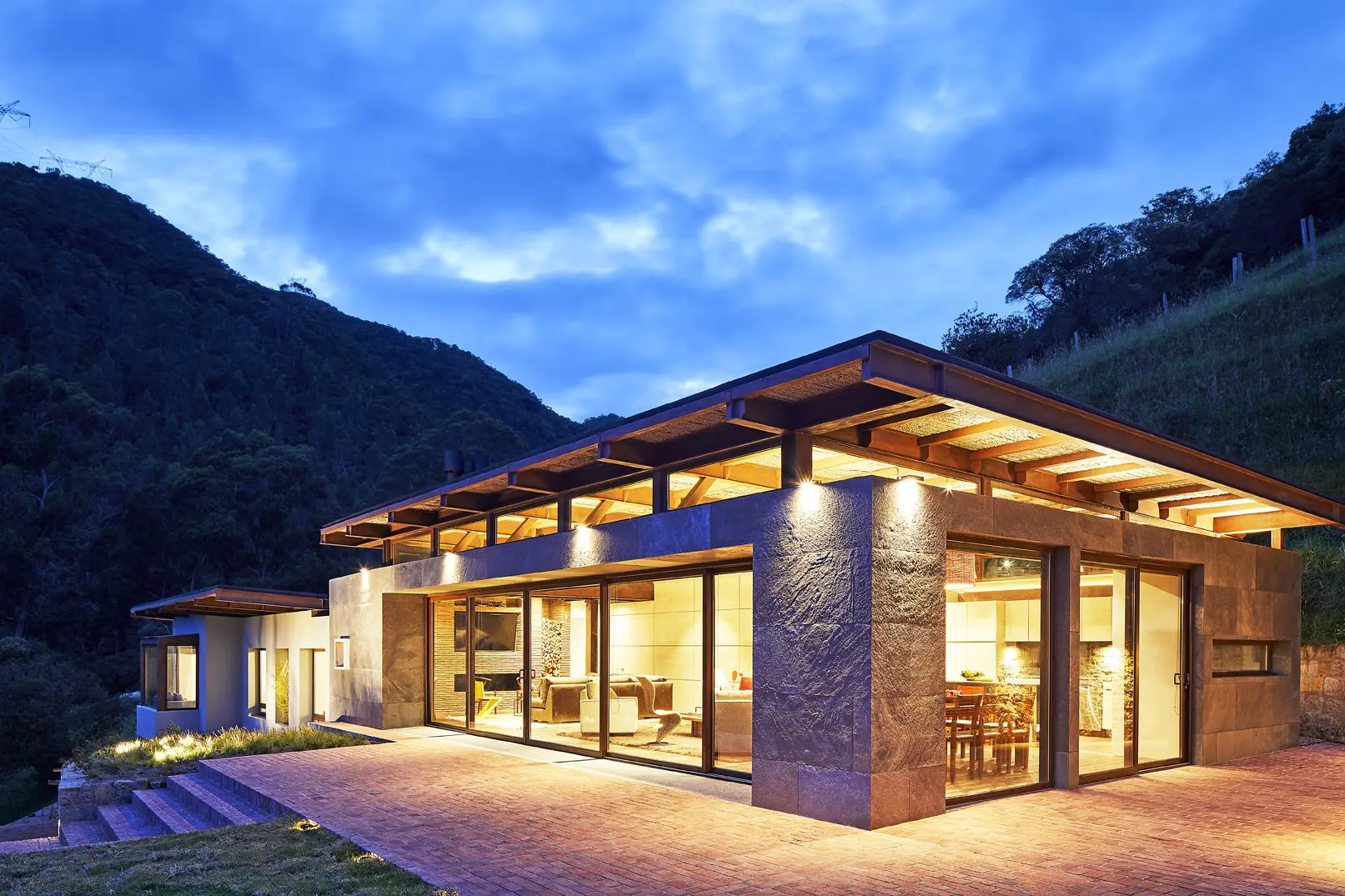 Ciertamente, el entorno natural es el gran protagonista de esta casa a las afueras de Bogotá, que contó con la construcción de Cano Ospina Ingeniería. No obstante, uno de sus mayores logros consiste en establecer una relación armoniosa entre una materialidad constructiva tradicional y las líneas depuradas contemporáneas.