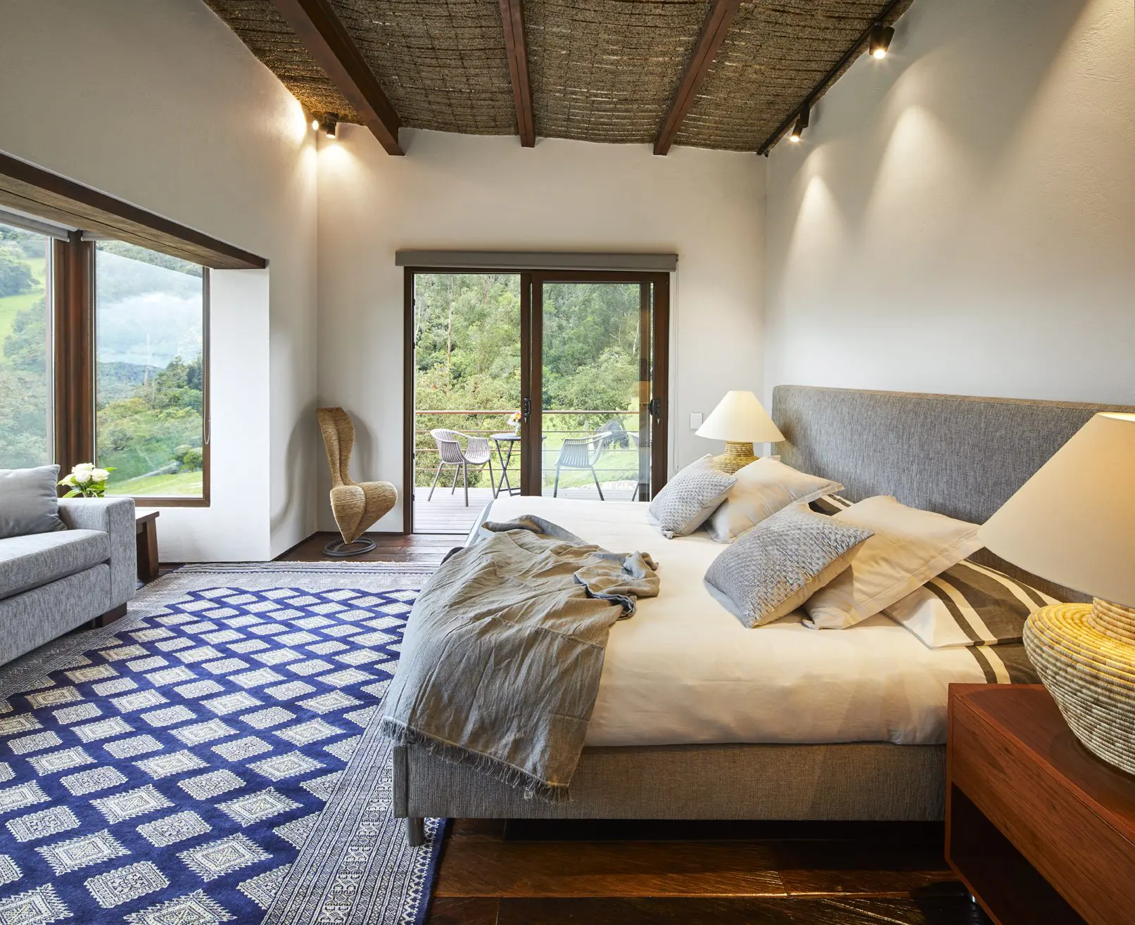 La arquitectura gira alrededor del paisaje, dado que el entorno –valle de Sopó– está enmarcado por la cordillera y poblado de árboles centenarios nativos. Por esto, su arquitecto e interiorista, David Restrepo –en colaboración con los arquitectos Juan Sebastián Mejía y Andrés Gutiérrez de Piñeros–, aprovecha el potencial del lugar para entablar un diálogo permanente con el hábitat circundante. “Los esfuerzos se concentraron en incorporar la arquitectura a la naturaleza, por lo cual ninguno de los elementos debía ser disruptivo”, afirma Restrepo.