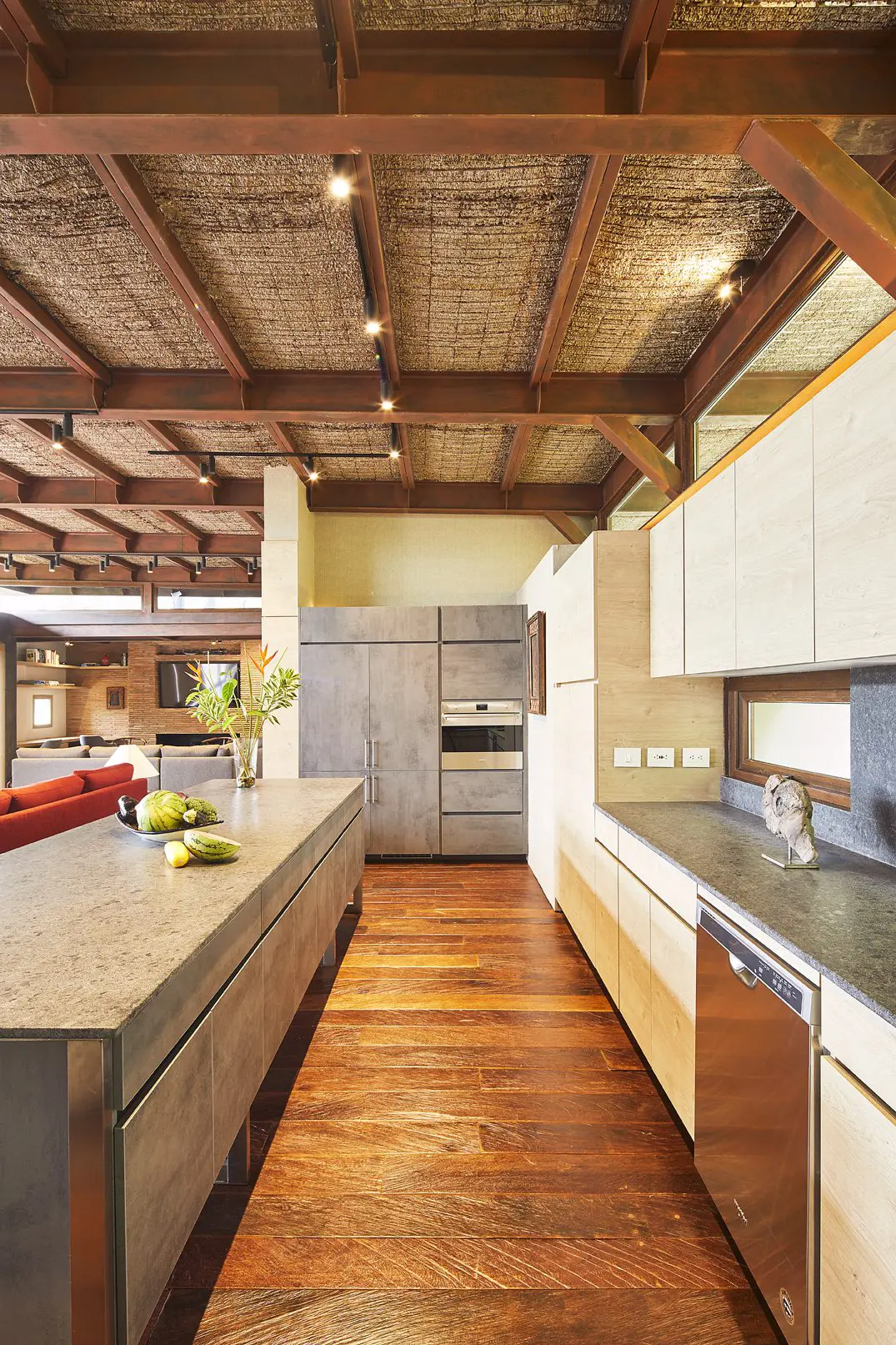 La cocina abierta –en forma de escuadra– es una prolongación de la sala y el comedor, lo que dinamiza los encuentros familiares. Asimismo, la barra aérea –que sigue las tendencias internacionales– funciona como comedor auxiliar. Gracias a esto las actividades de preparar y servir se desarrollan en un mismo espacio.