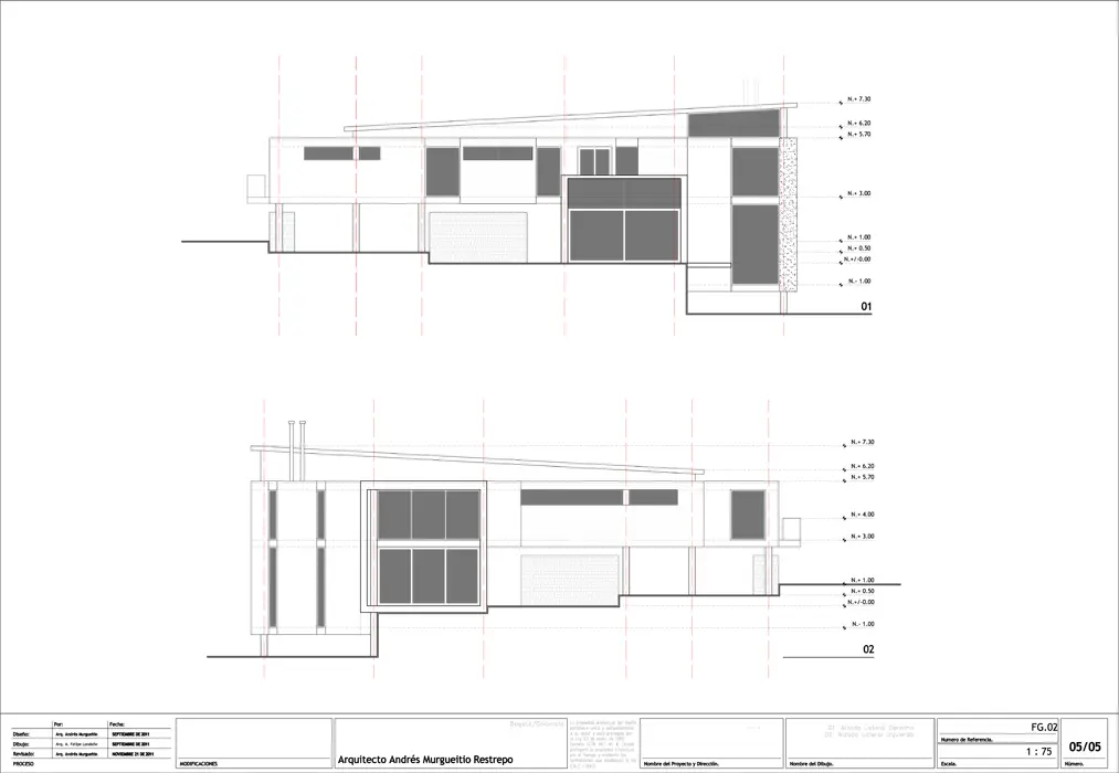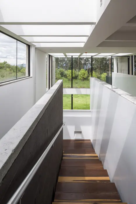 Para acomodar los requerimientos del programa que ocupa un área de 482 metros cuadrados, al relieve de la ladera, el arquitecto Andrés Murgueitio planteó un diseño que aprovecha las posibilidades del concreto y vuela sobre el terreno que queda casi intacto bajo la estructura de la vivienda. “Como el lote está cruzado por una escorrentía que conduce las aguas de la montaña cuando llueve, levantamos la casa para respetar esa característica”, explica.