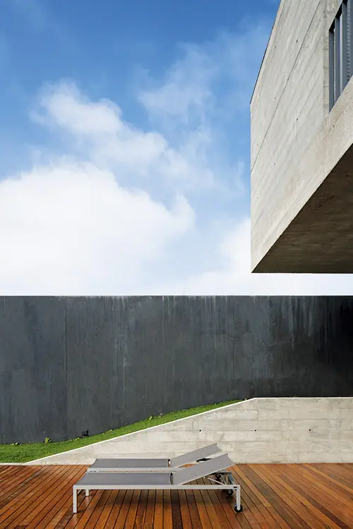 La misma división tajante se observa al comparar el espacio vacío de la planta baja y la caja pesada de la alta. Mientras en el nivel de calle se promueve la socialización, en el superior se protege la privacidad. Incluso las ventanas de los dormitorios, abiertas con perforaciones muy precisas, se proyectan hacia balcones propios, concebidos como pequeños patios elevados.