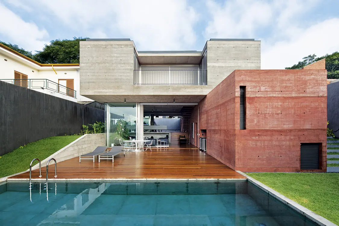 En una ciudad abigarrada como São Paulo, las fugas visuales, dadas por una topografía irregular, descomprimen los espacios urbanos y permiten, en algunas oportunidades, proyectar los interiores mucho más allá del límite del terreno. Ese es el caso de la Casa Boaçava, diseñada por el estudio Una Arquitetos, ubicada en un lote alto y alargado, y con un desnivel de seis metros con el vecino posterior, que no interrumpe las vistas lejanas.