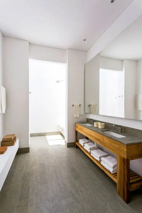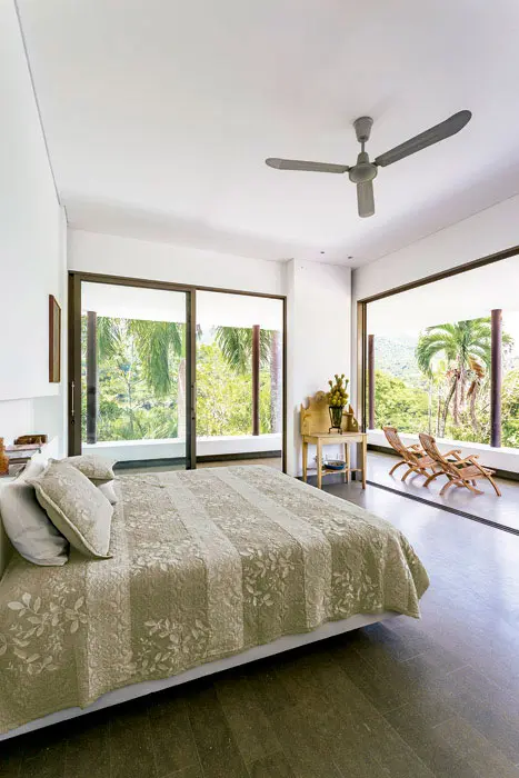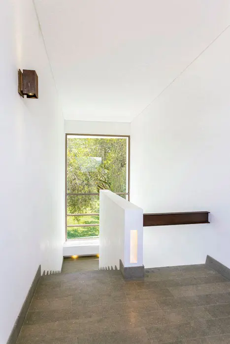 Marcando un contraste con estas áreas de encuentro y esparcimiento, los pabellones de servicios y de habitaciones están definidos por muros blancos que destacan la privacidad y la sensación de seguridad de estos ambientes.
