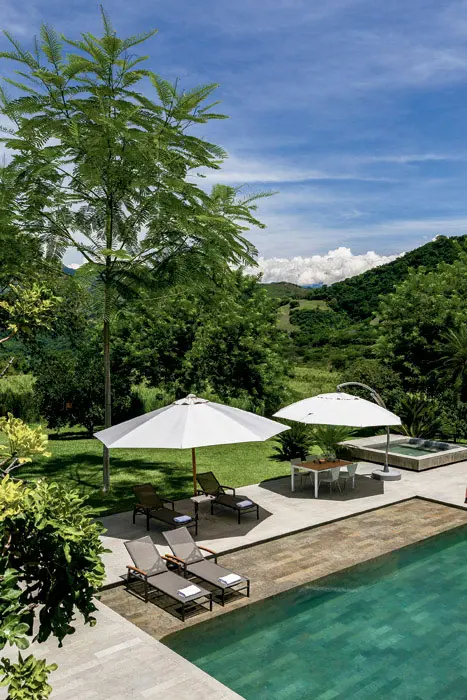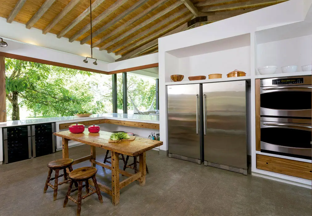 El diseño de Octubre Arquitectos, bajo la dirección de Guillermo Arias, está inscrito entre el sentido práctico y el deleite estético para crear escenarios que permiten vivir el lugar bajo el sol y entre los árboles al abrigo de un tejado en torno de una gran cocina, como es habitual en las casas campesinas, y entre muros cuando buscan seguridad, recogimiento y privacidad.