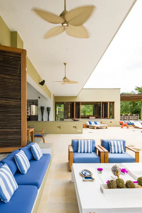 Justamente, el diseño de la casa se inspiró en la panorámica que se quería lograr, obteniendo así el mejor ángulo en el sur; allí están los espacios sociales y la alcoba principal, que se orientaron sin la incidencia directa de luz natural, así que son ambientes frescos.