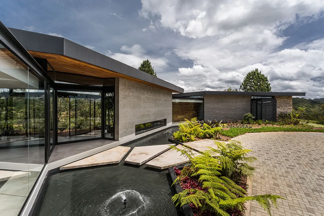Esta casa en la montaña en Medellín de 550 metros cuadrados fue diseñada y construida por el arquitecto Camilo Ramírez en colaboración con el arquitecto Tomás Vega. Toda su esencia da cuenta de esto. En ella, la vida íntima y familiar aparece inscrita en una construcción lógica y controlada que se posa en el borde de una montaña boscosa a las afueras de Medellín.