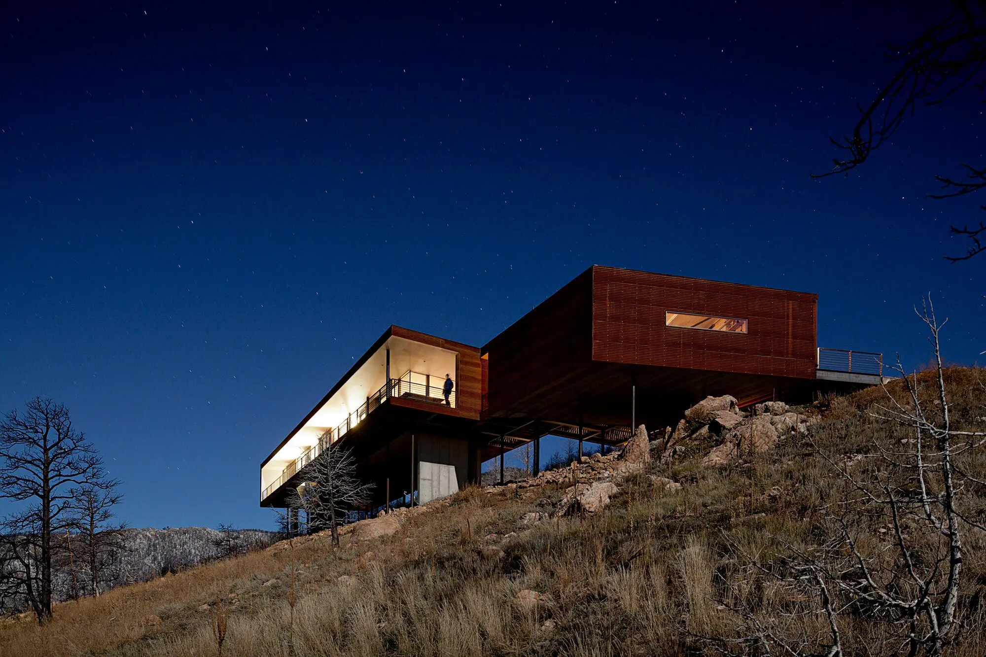 Ubicada a 7,300 pies, por encima de la ciudad de Boulder (Colorado, Estados Unidos) Sunshine Canyon Residence acentúa su espectacular sitio al yuxtaponer una forma simple con los contornos empinados de un paisaje marcado por incendios forestales.