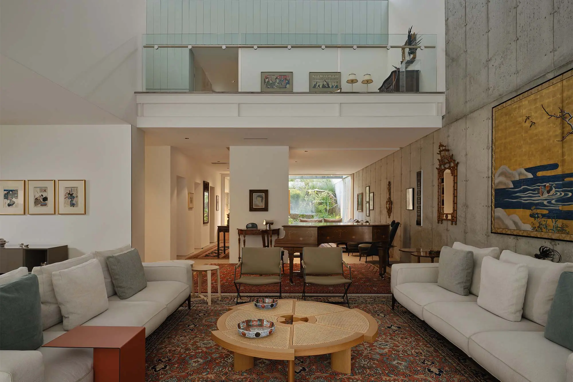 Abiertos al norte, todos los espacios principales de la planta baja ofrecen vistas al barranco gracias a una pared de cristal. Esta fachada norte conecta el interior con la naturaleza circundante, mientras que las terrazas exteriores se extienden más allá de un porche de estilo palco de nueva construcción y descienden gradualmente hacia el barranco. Dentro de los límites de los muros de contención originales, un nuevo y abundante paisajismo realza la conexión entre la casa y su entorno natural.