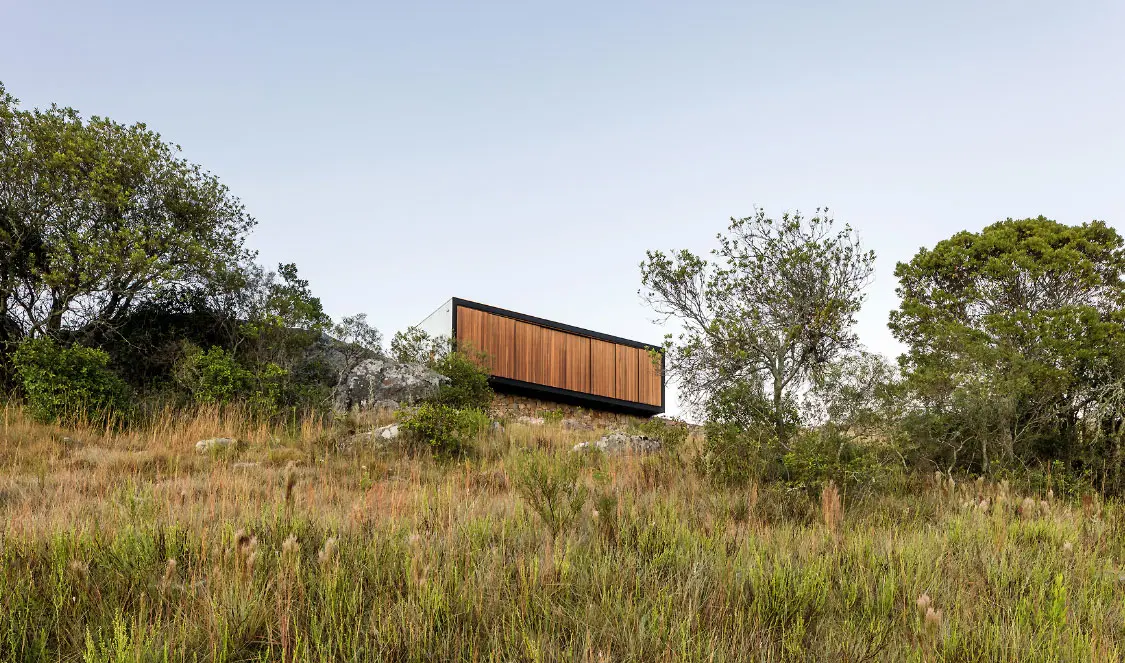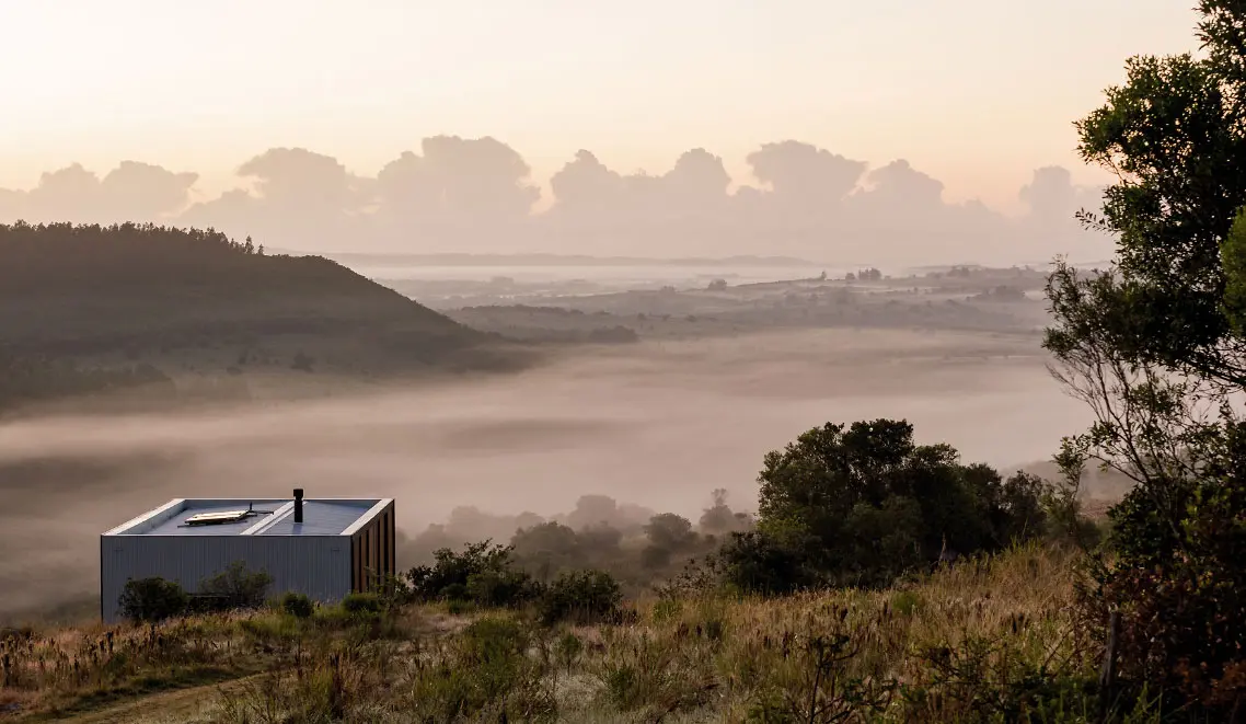 La posibilidad de insertar un espacio habitable en un área natural, se convirtió en un reto para el estudio de arquitectura binacional Mapa. Ede es una casa prefabricada en un zona rural de Uruguay en donde el cien por ciento de las estructuras fueron transportadas para ser ensambladas en un terreno inhabitado.