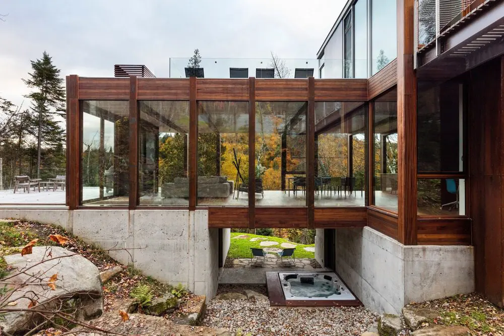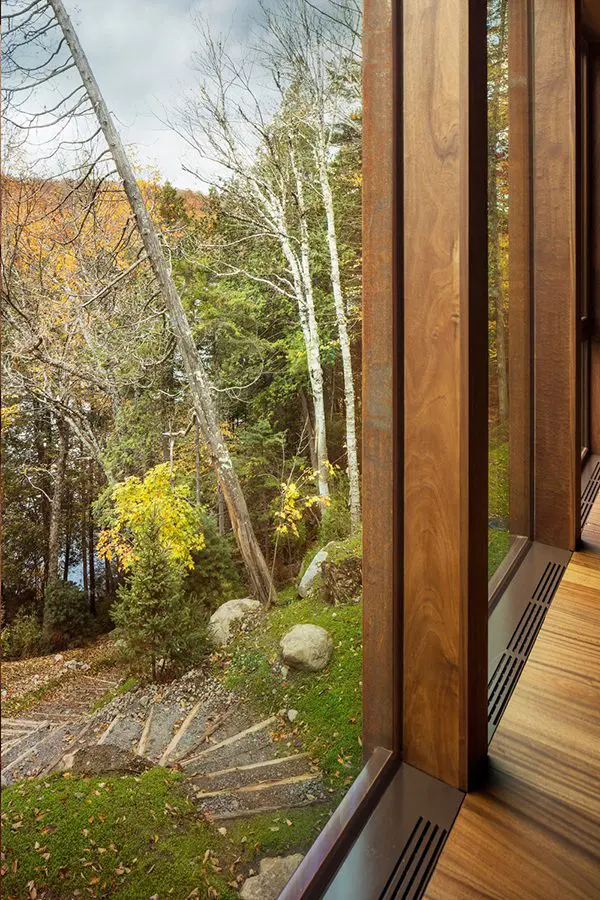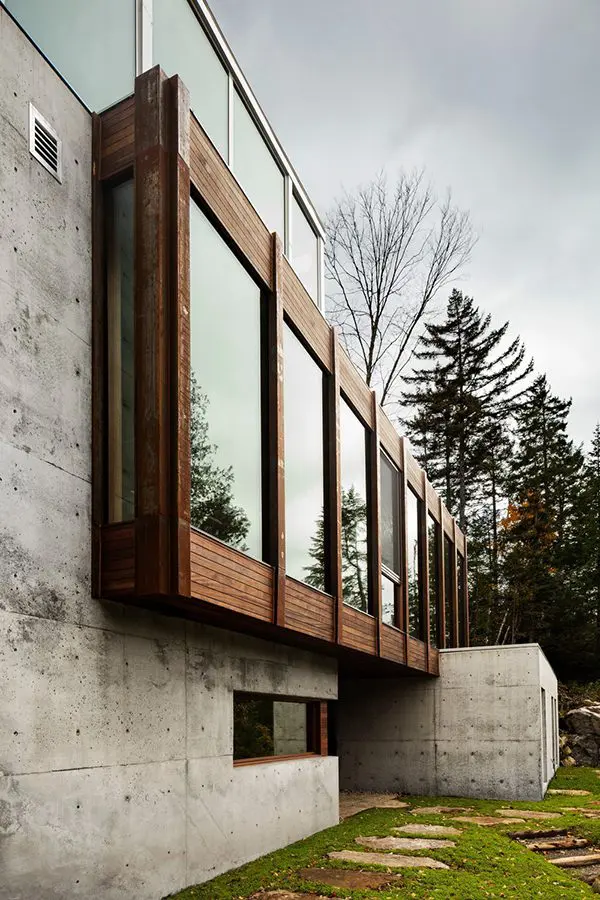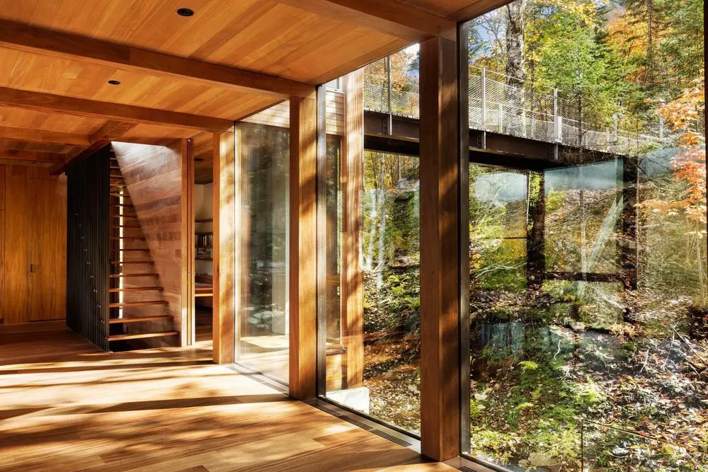 Esta casa llena de luz, está colgada literalmente de un acantilado. Ubicada en un terreno perteneciente a una propiedad que comenzó hace más de cien años y es conocido por sus paisajes y lagos vírgenes en Canadá.