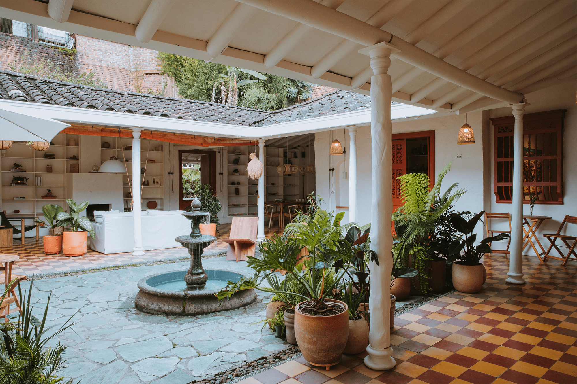 Durante todo el proceso, intervinieron otros dos arquitectos, aparte de Vega. Juan Pablo Martínez se encargó del paisajismo del patio central —donde está la fuente— y del solar, en tanto que Manuela Bonilla apoyó el diseño del bar. Por su parte, María Montoya ejerció como directora creativa del interiorismo y la decoración del lugar.